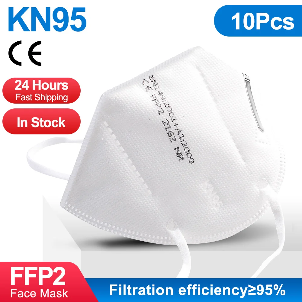 Маска для лица ffp2 KN95, 10 шт., многоразовая, 95%, 5 слоев