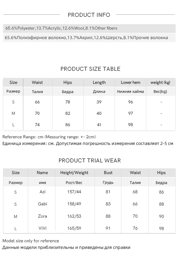 Очень теплая юбочка. Шерсть хорошо ощушается. Размер L на 70-98 впритык. Коротенькая. С плотными колготками хорошо. Пошита качественно. Подюбник в виде шортиков. Клетка на боковых швах не совпадает.