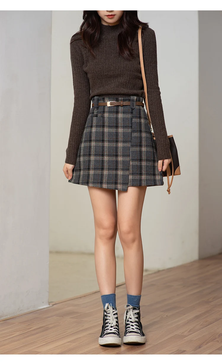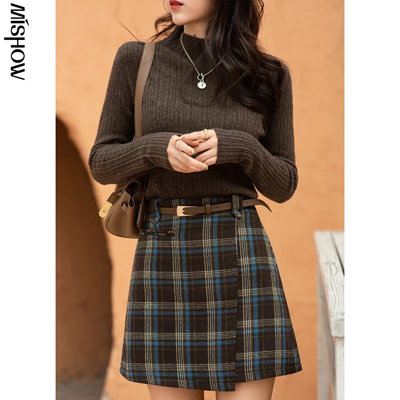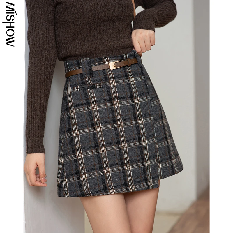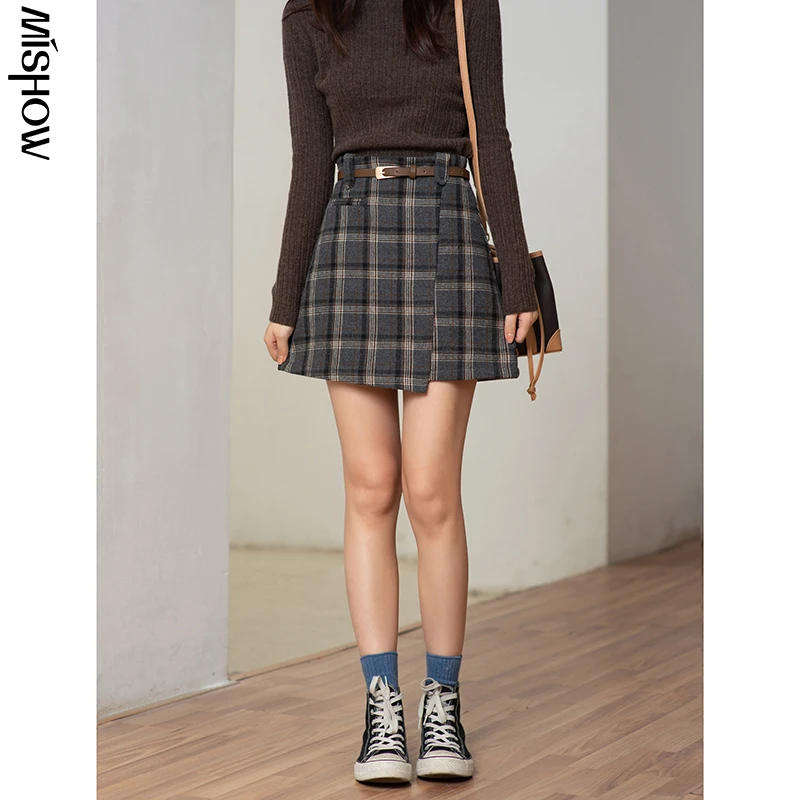 MISHOW 2020 зимняя женская юбка для женщин трапециевидная с высокой талией клетчатые ремни сексуальные мини юбки женская нижняя одежда MX20D1951