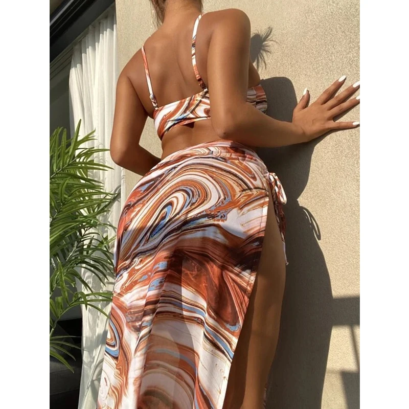 Сексуальное бикини 2022, женский купальный костюм пуш-ап с цветочным принтом, комплект бикини из 3 предметов с закрытой спиной, Бразильское бикини пуш-ап, купальная одежда