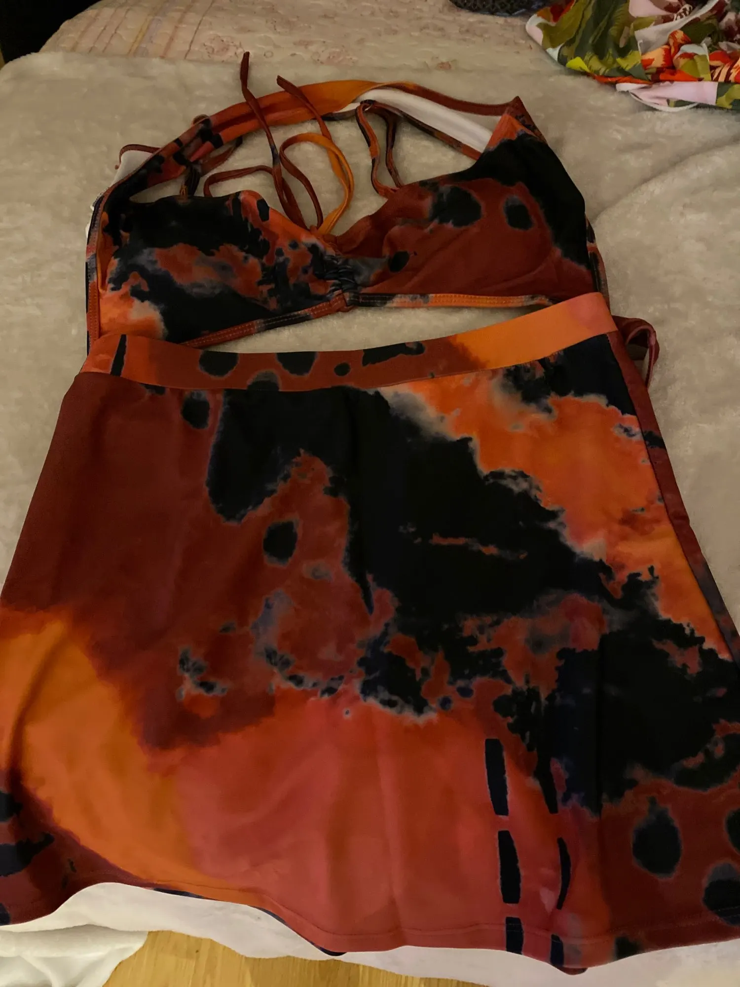 Бикини немного маленькое на мне! Штаны немного дерзкие. Юбка очень длинная.