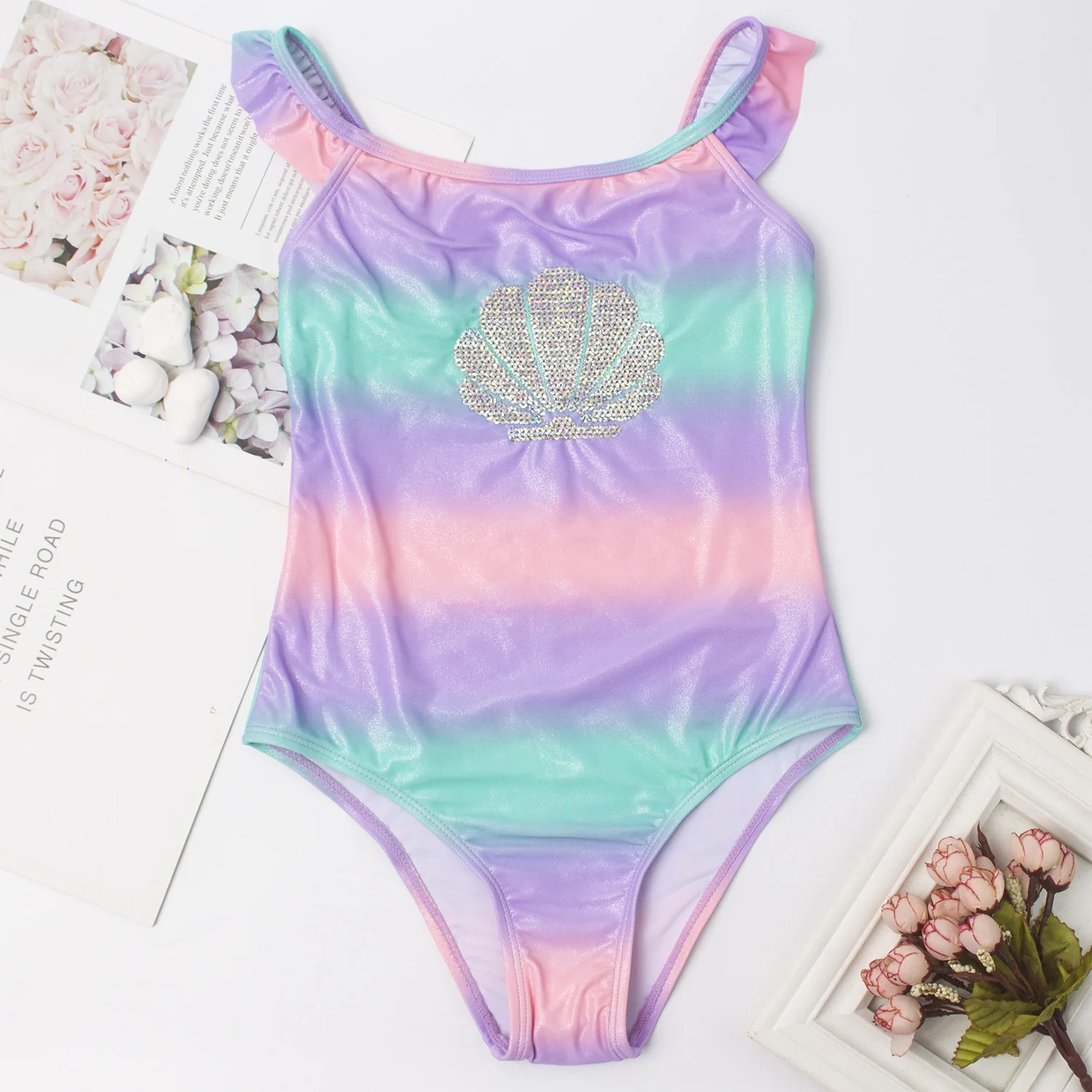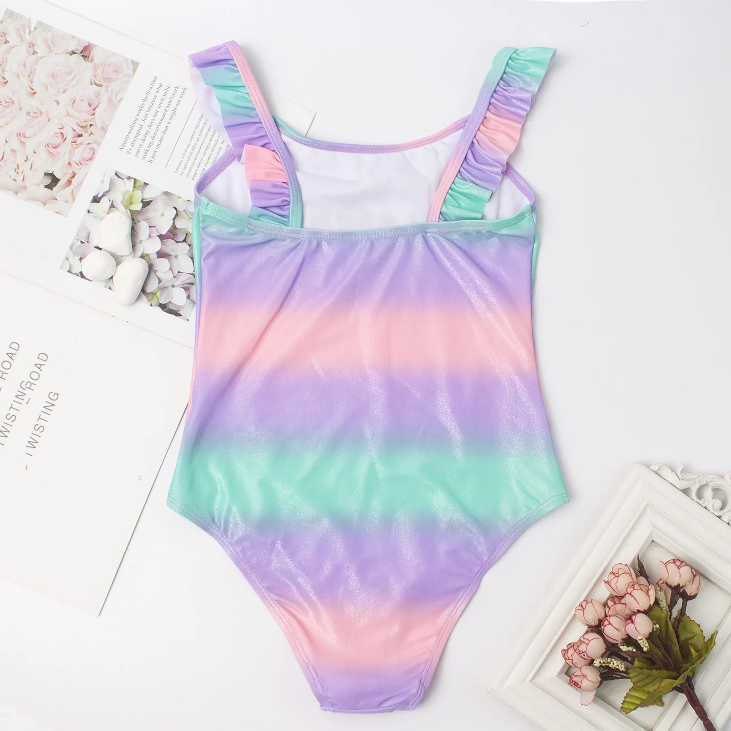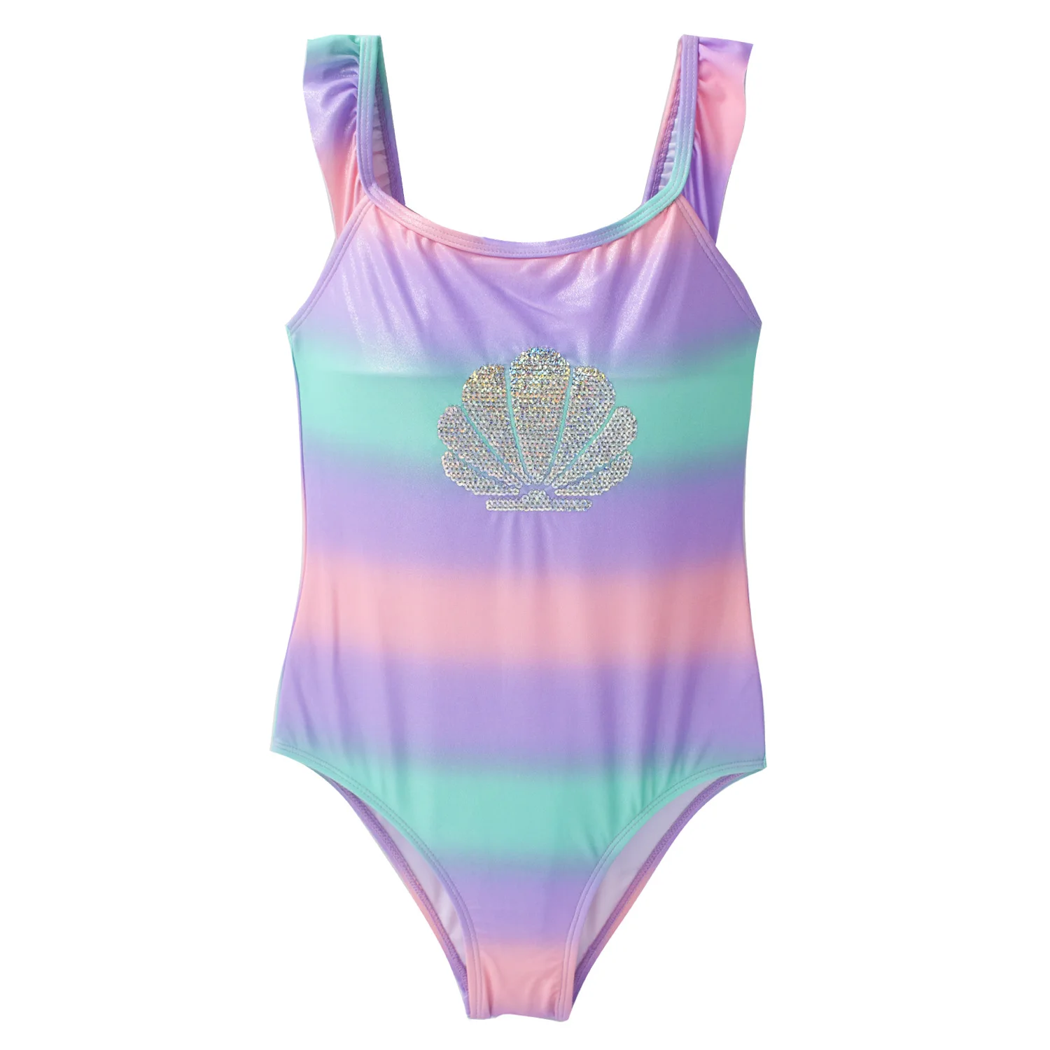 Новинка 2021, блестящий детский цельный купальник для девочек, Радужный красочный купальный костюм, купальник, детский раздельный купальник, пляжная одежда