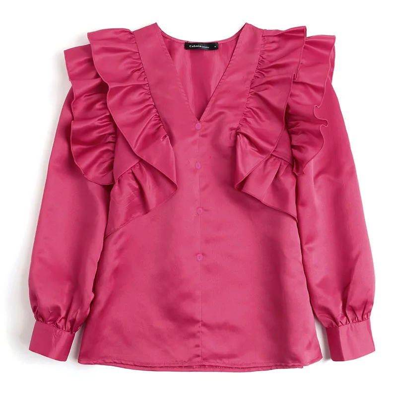 Блузка Celmia женская с V-образным вырезом, модная пикантная Повседневная элегантная однотонная офисная рубашка с оборками, с длинным рукавом, 7, осень 2021