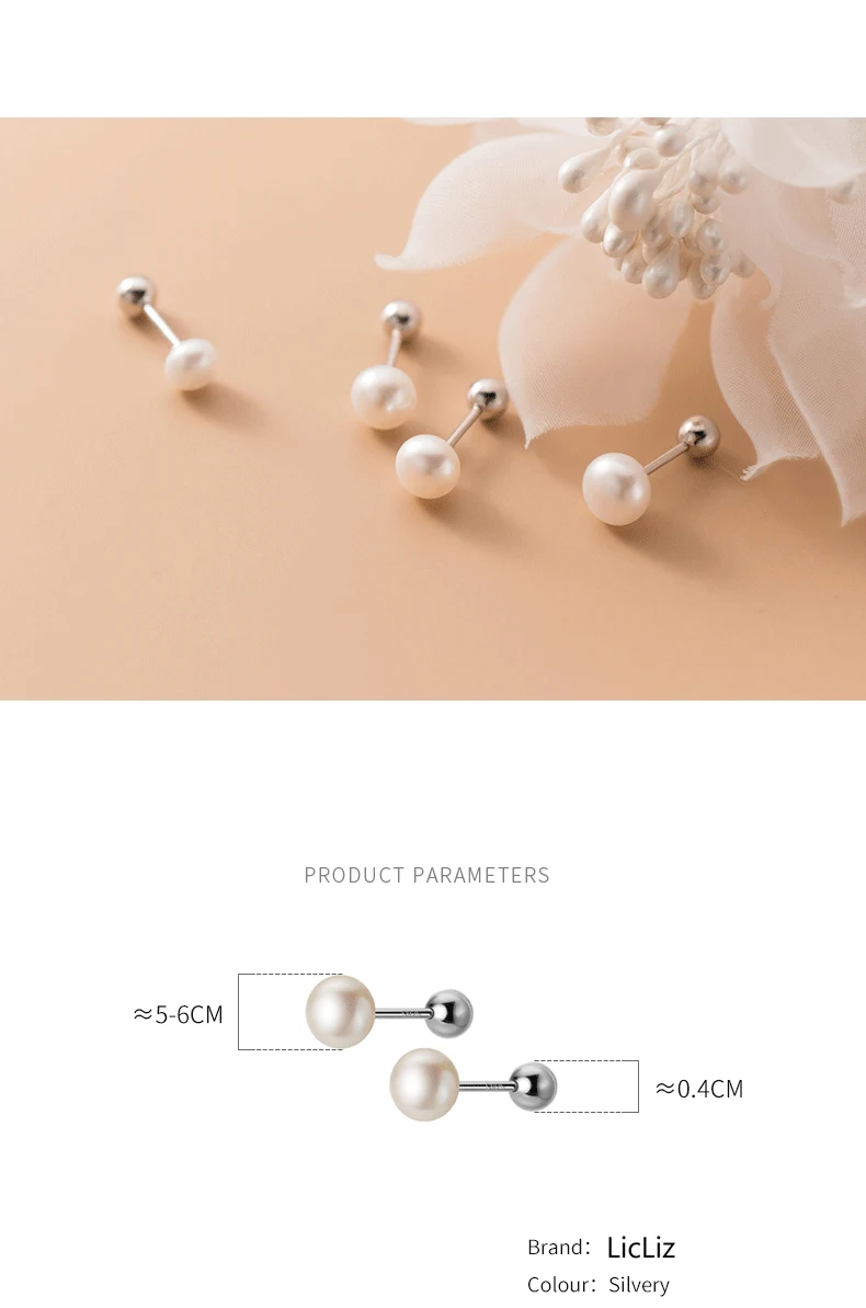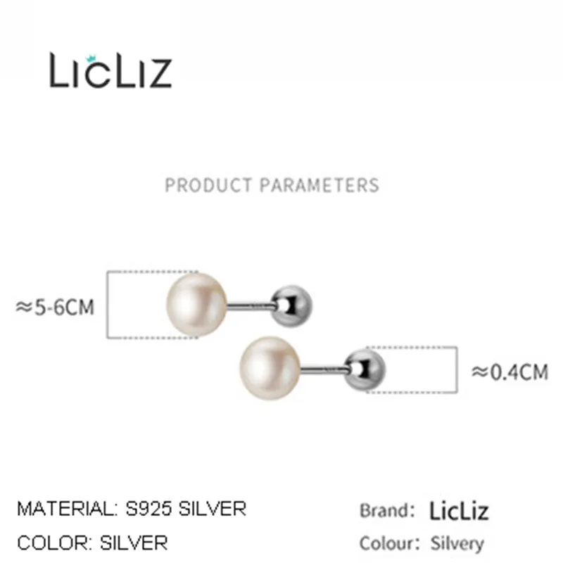 LicLiz новый простой 925 стерлингового серебра серьги-гвоздики для женщин Симпатичные маленькие круглые серьги с белыми жемчужинами ювелирные изделия, подарок ко дню рождения LE0710