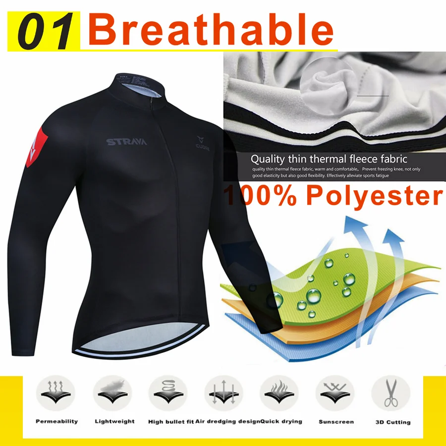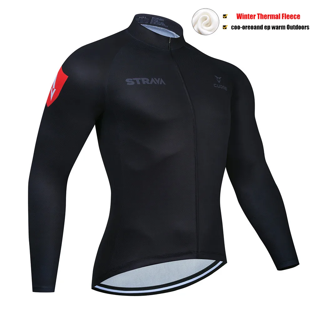 Зимний теплый флисовый трикотажный комплект для велоспорта STRAVA, ...