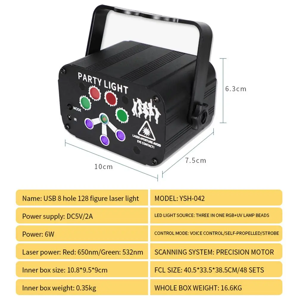 Яркий лазерный светильник с 8 отверстиями 128, лампа для сцены, лам...
