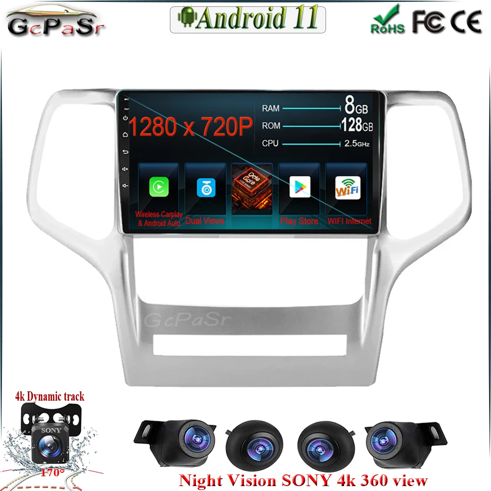 Автомагнитола на Android 11 для Jeep Grand Cherokee WK2 2008-2013, мультимедийный проигрыватель с Wi-Fi и DSP радио, 2 Din, без DVD-плеера