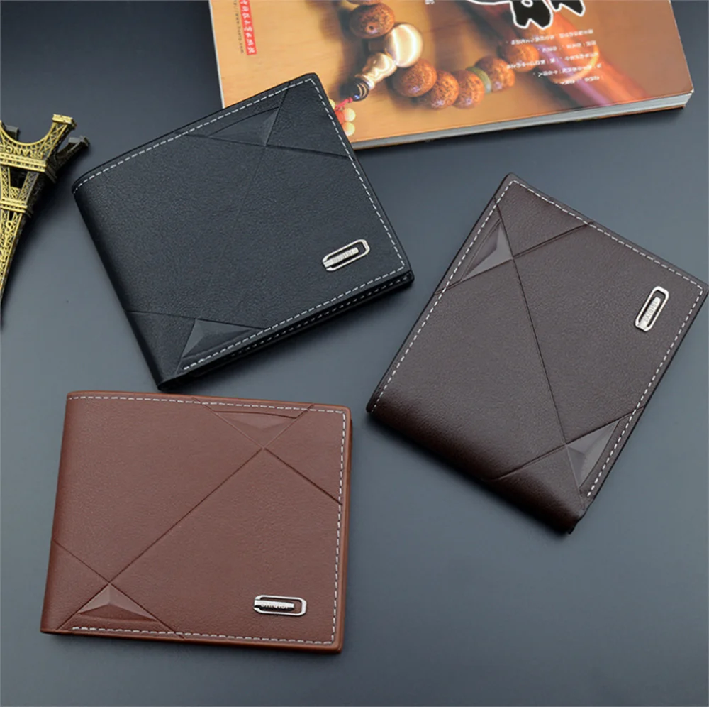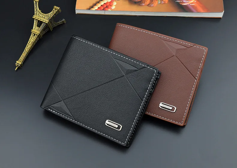 Мужской короткий складной кошелек из искусственной кожи, мужской ко...