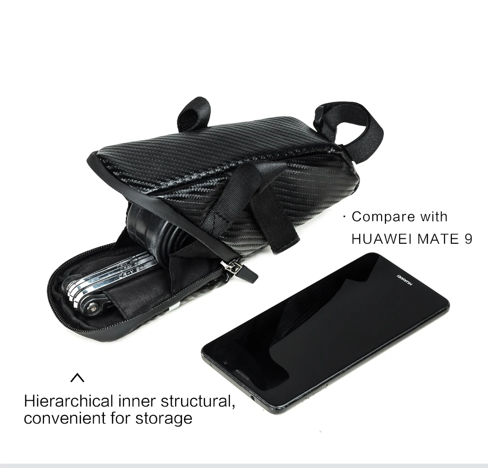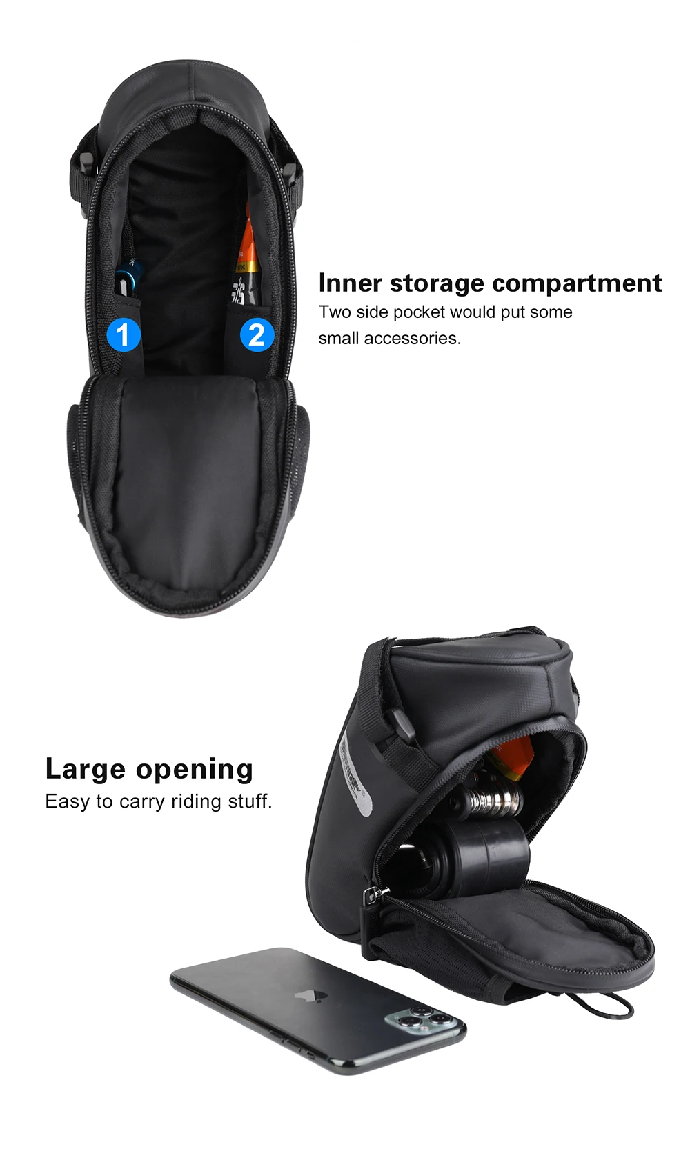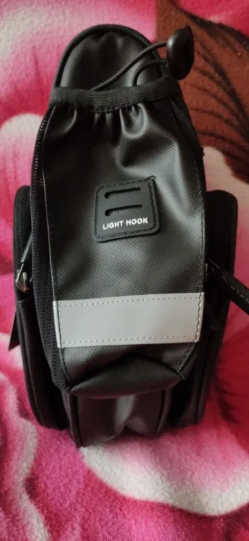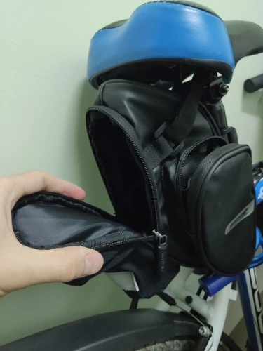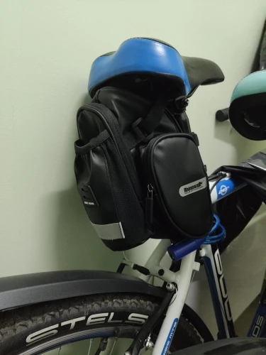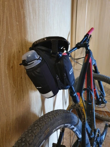 Качество высшего класса. Водостойкий чехол в комплекте. Велобутылка влезает с трудом, но стандартная 0,5 отлично. Крепится надёжно, не выступает за сиденье и ехать не мешает. Поместилась даже на немного выдвинутом штыре седла. Шла около месяца в Подмосковье.
