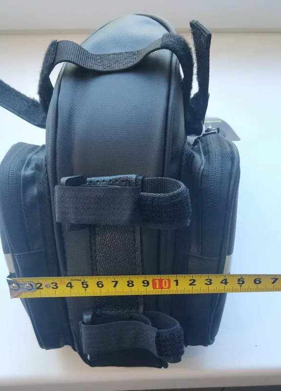 Вместительная сумка, хорошие плавные молнии. Влез весь походный набор инструмента и две камеры. Как поведет себя в эксплуатации покажет время.