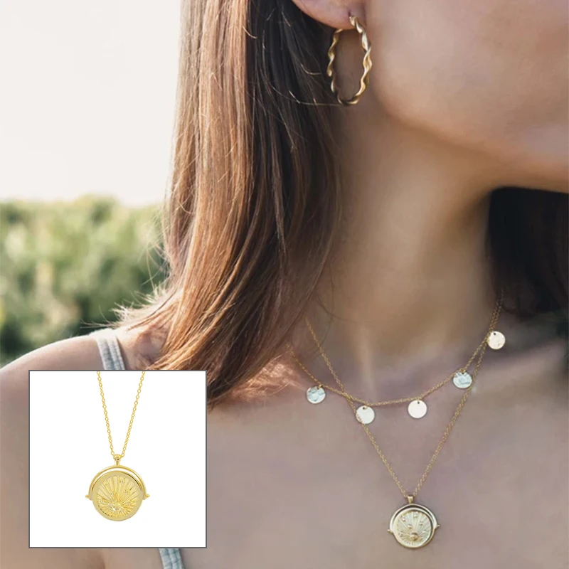 Цепочка с подвеской в виде монеты, резной золотой кулон из нержавею...