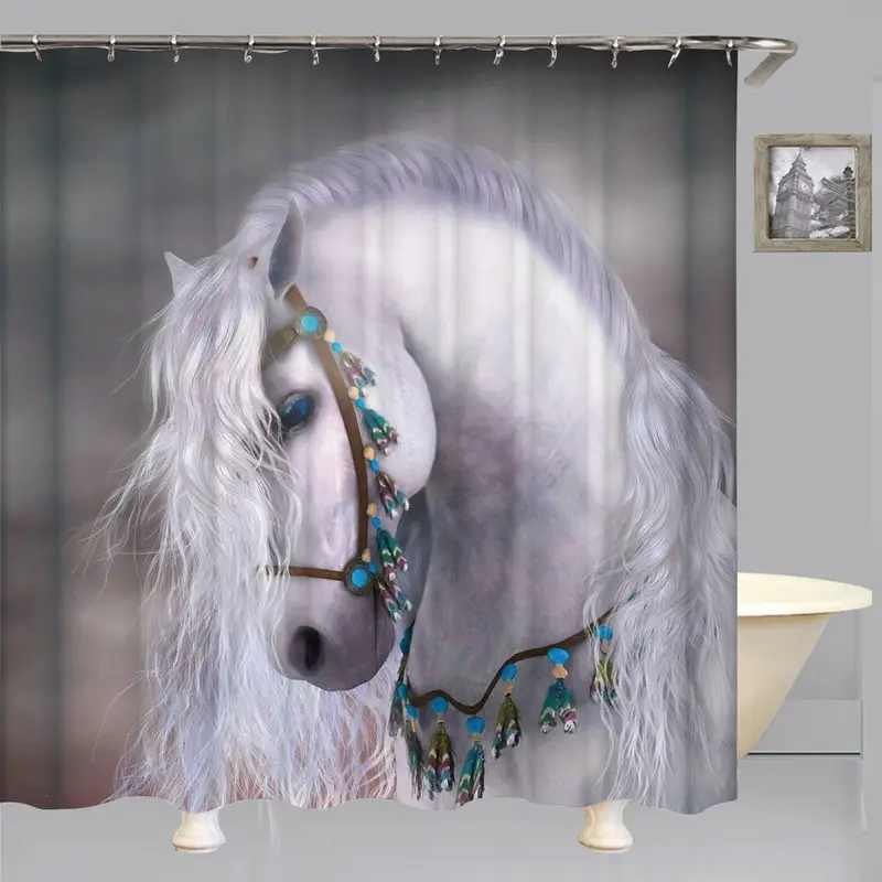 Белая лошадь полиэстер ткань душ Шторы нескользящий коврик для ванной комнаты крышка для унитаза ковры животных Ванная комната Декор для ванной комнаты