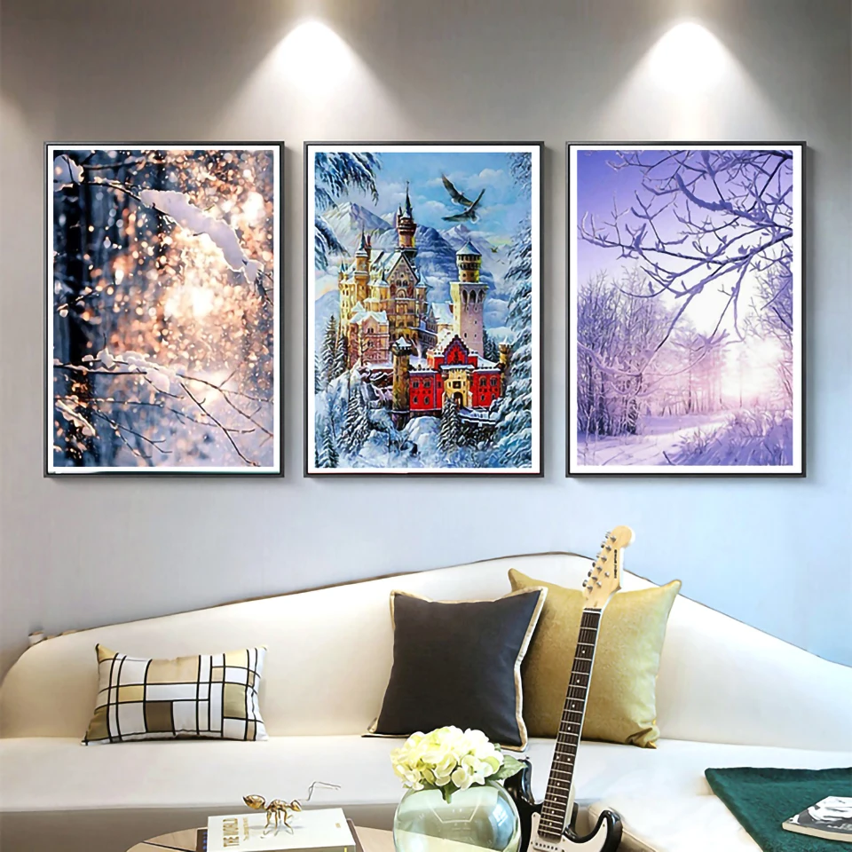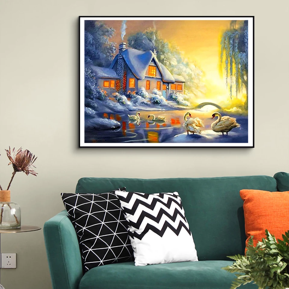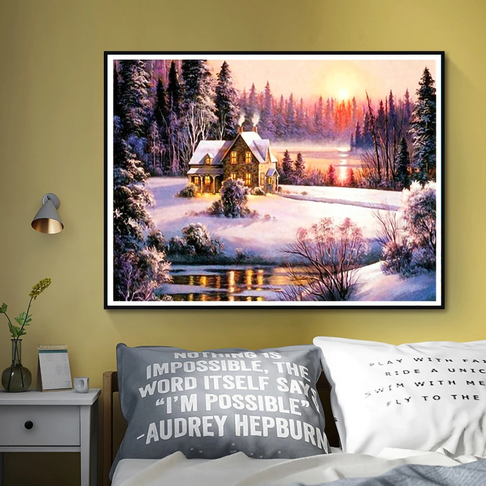 Алмазная живопись 5D "Зимний пейзаж" для самостоятельной сборки, алмазная вышивка, набор, дом, стразы, вышивка крестом, картина-мозаика