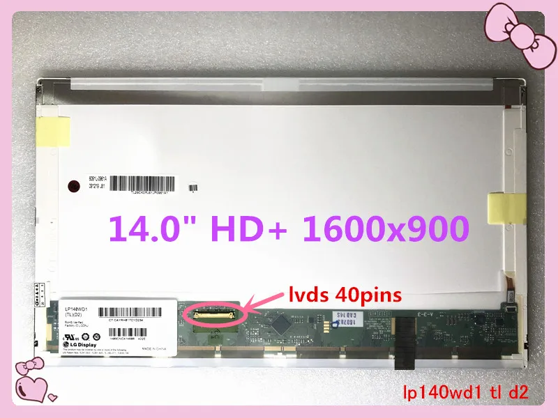 Бесплатная доставка 14,0-дюймовый ноутбук ЖК-дисплей LTN140KT04 B140RW03 V.0 V.1 LTN140KT01 LTN140KT07 LP140WD1 TLM1 D1 N140O6-L02 1600*900 40 контакты