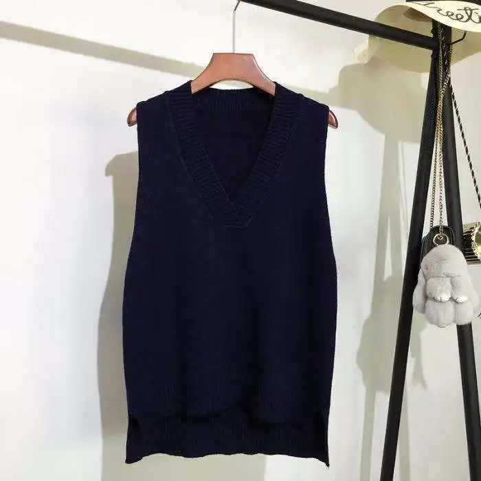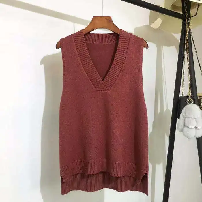 Женская вязаная жилетка, винтажный свитер из твида с V-образным вырезом, без рукавов, пуловер в Корейском стиле, свободные топы, Осень-зима 2020