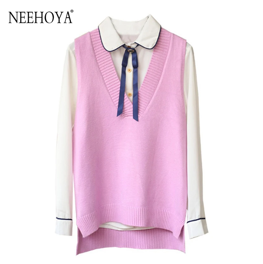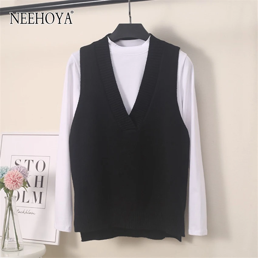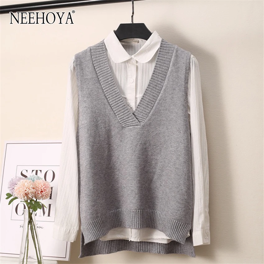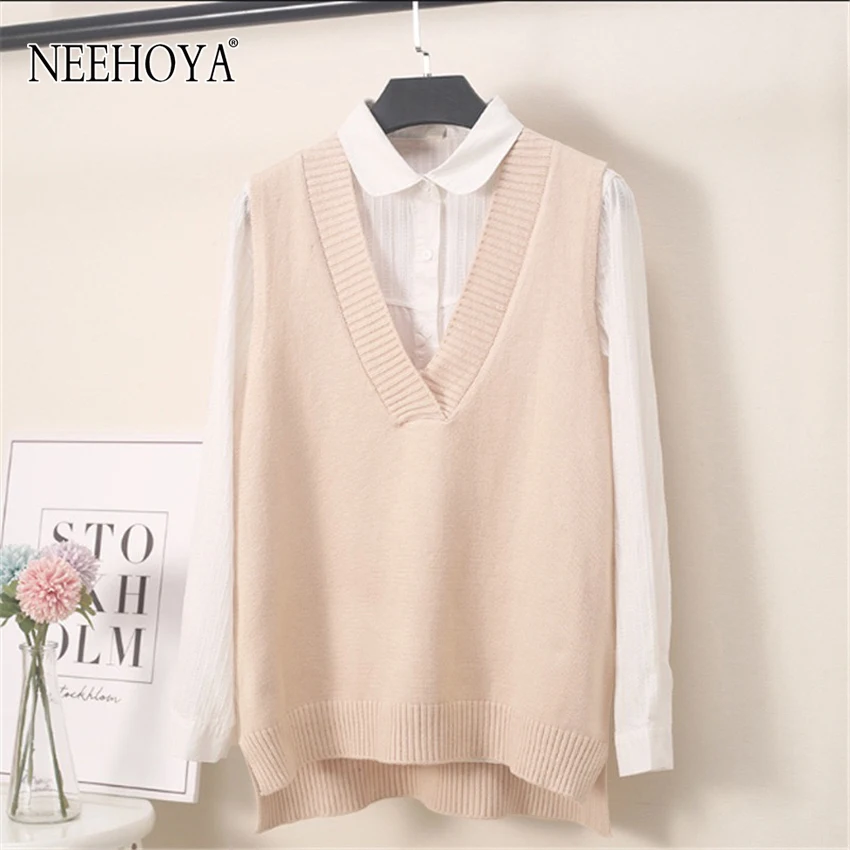Вязаный жилет NEEHOYA, женский свитер, осенне-зимний Однотонный пул...