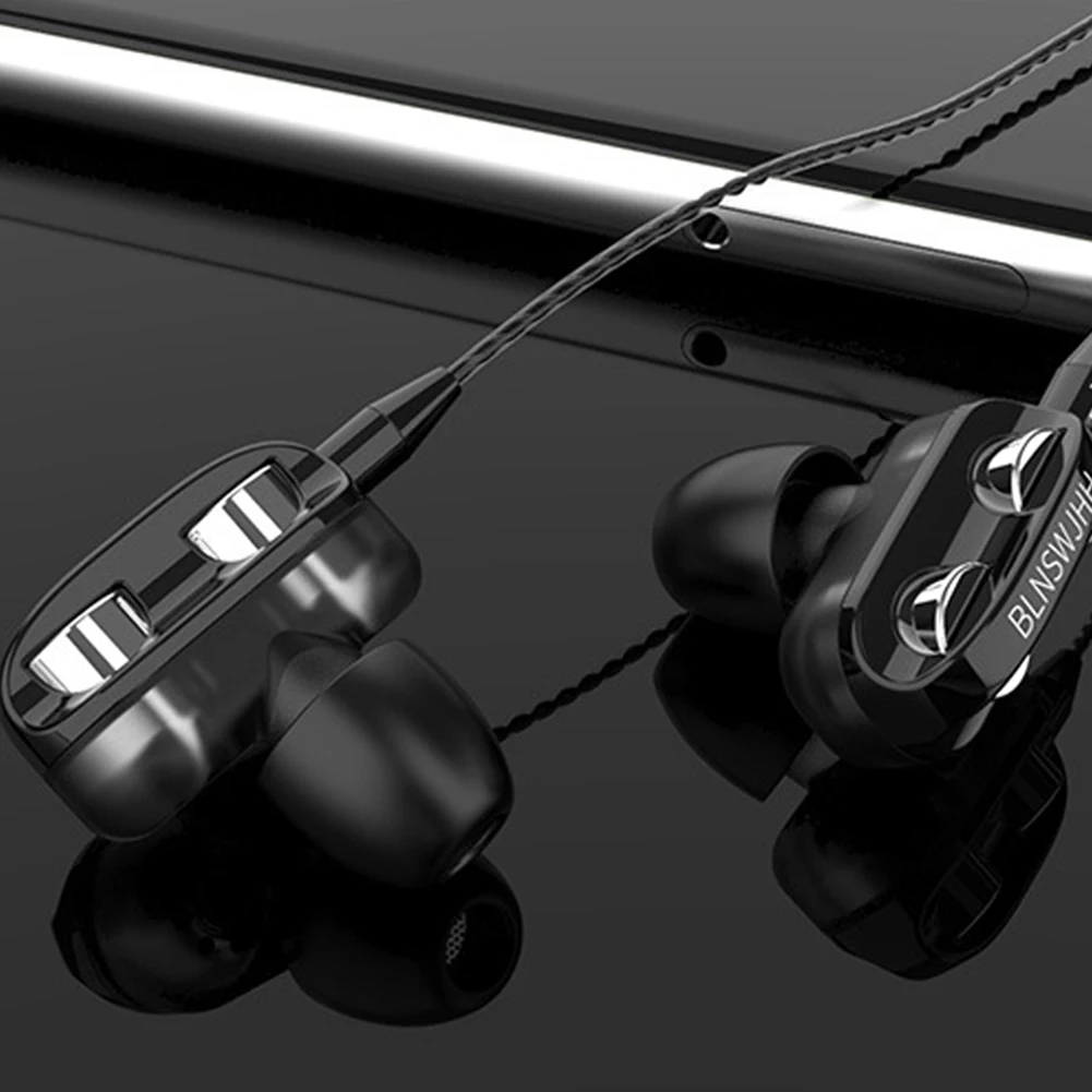 Универсальные Проводные стереонаушники-вкладыши с усиленными басами, игровые наушники с двойным динамиком, Спортивная гарнитура с микрофоном для Xiaomi, Samsung