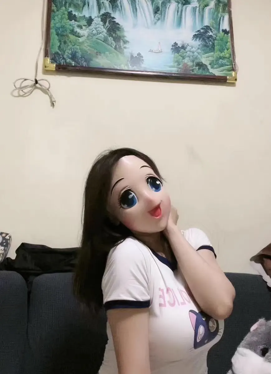 Лидер продаж! Маска на все лицо из латекса с большими глазами для девушек, маска кигуруми на половину головы, мультяшный косплей, японское аниме ролевая маска Лолиты, кросс-платье