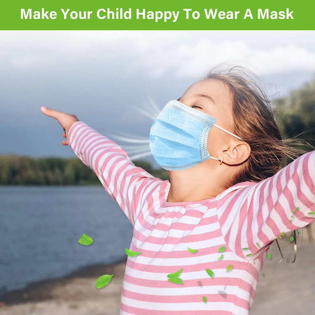 Детская трехслойная Защитная Пылезащитная одноцветная одноразовая маска с рисунком