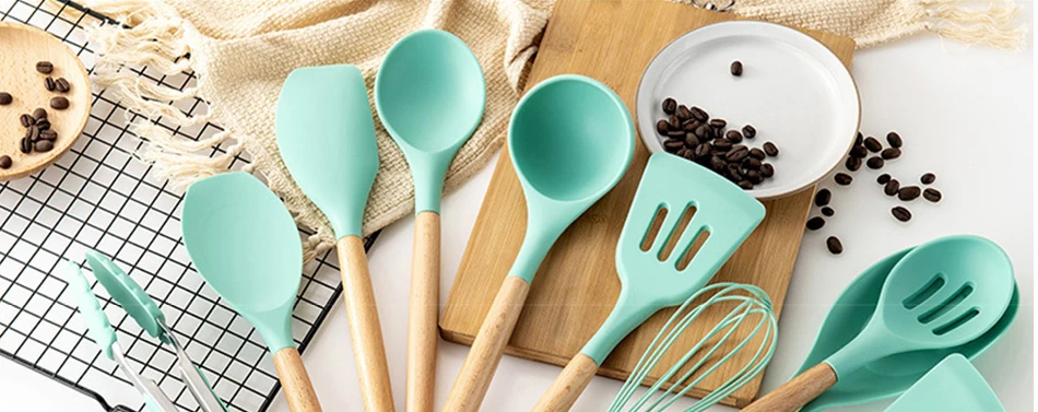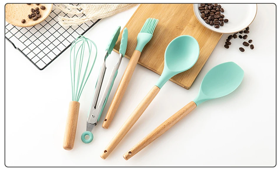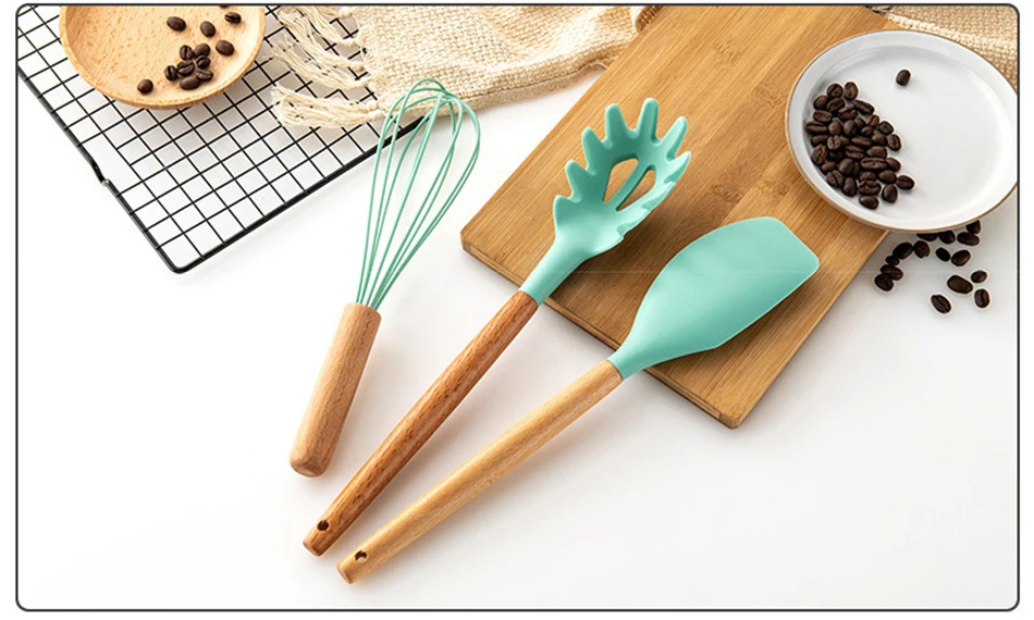 Новая силиконовая ложка для супа, лопатка, щетка, скребок, паста, сервер, взбиватель яиц, кухонные инструменты для готовки, кухонные принадлежности зеленого цвета