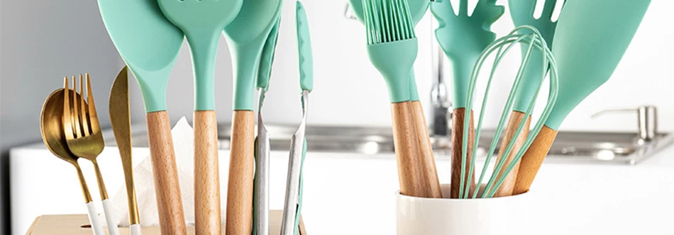 Набор кухонной посуды, 1 шт., зеленая силиконовая Антипригарная посуда, инструмент для приготовления пищи, лопатка, ложка, суп, аксессуары для кухни