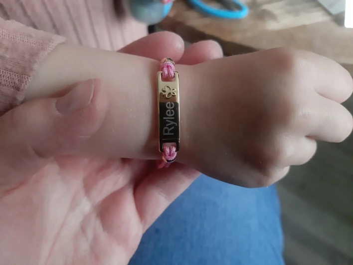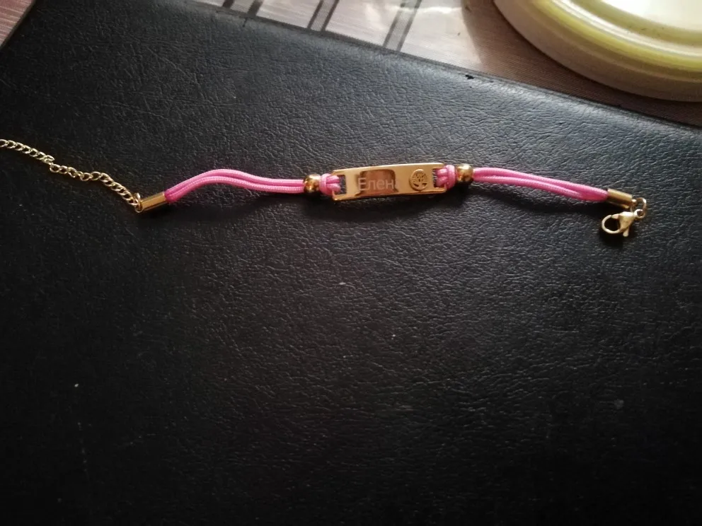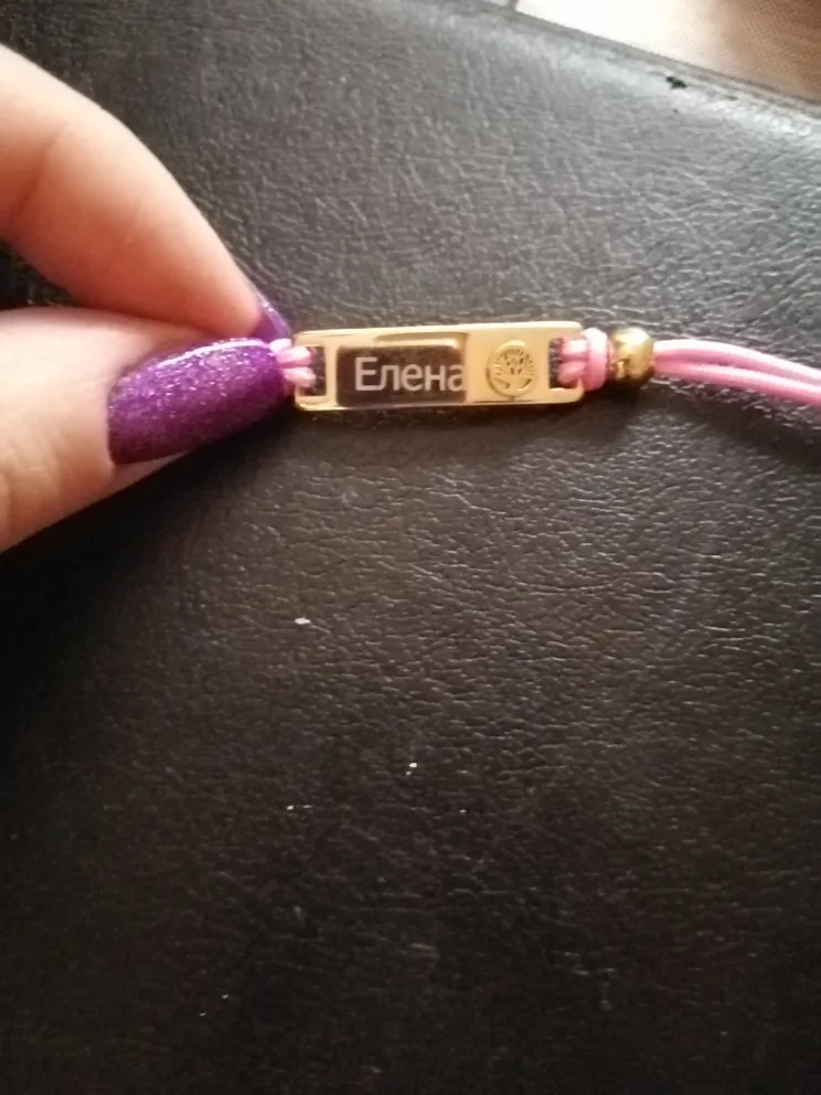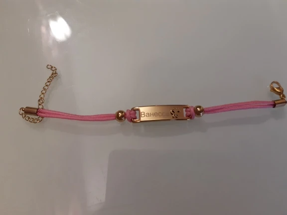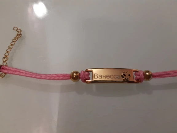 Пришло быстро, продавец приятный. На обратную сторону уместил номер телефона из 12 символов - получилось очень мелко и бледно, но кому надо разберется. Но браслет порвался через неделю - разорвалось кольцо.