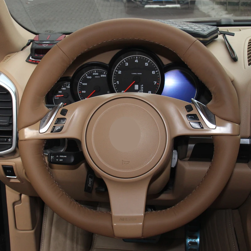 Hand Sewing Car Steering Wheel Cover Wrap Suede Cow leather For Porsche Cayenne 2011 2012 2013 2014 Microfiber Leather Stuurhoes