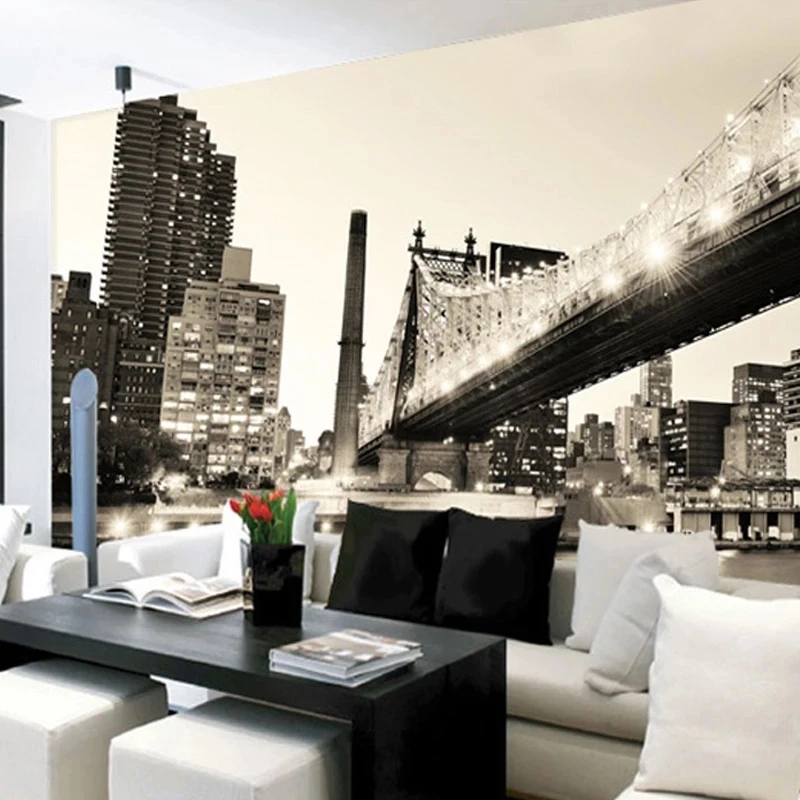 Настенная 3D фотообои на заказ, улучшение дома, Ретро стиль, черный и белый город, мост, пейзаж, офис, гостиная, настенные бумаги