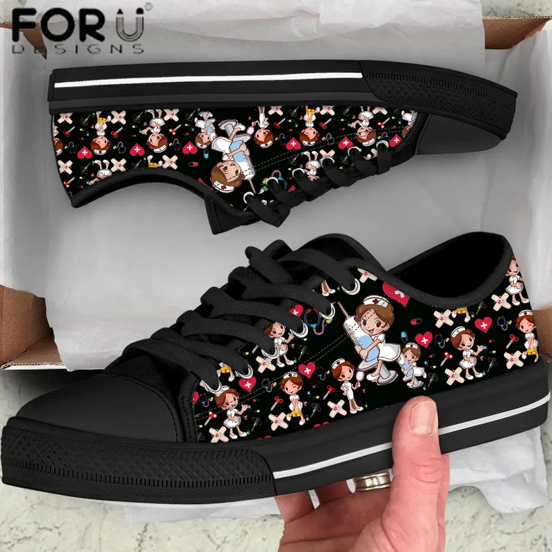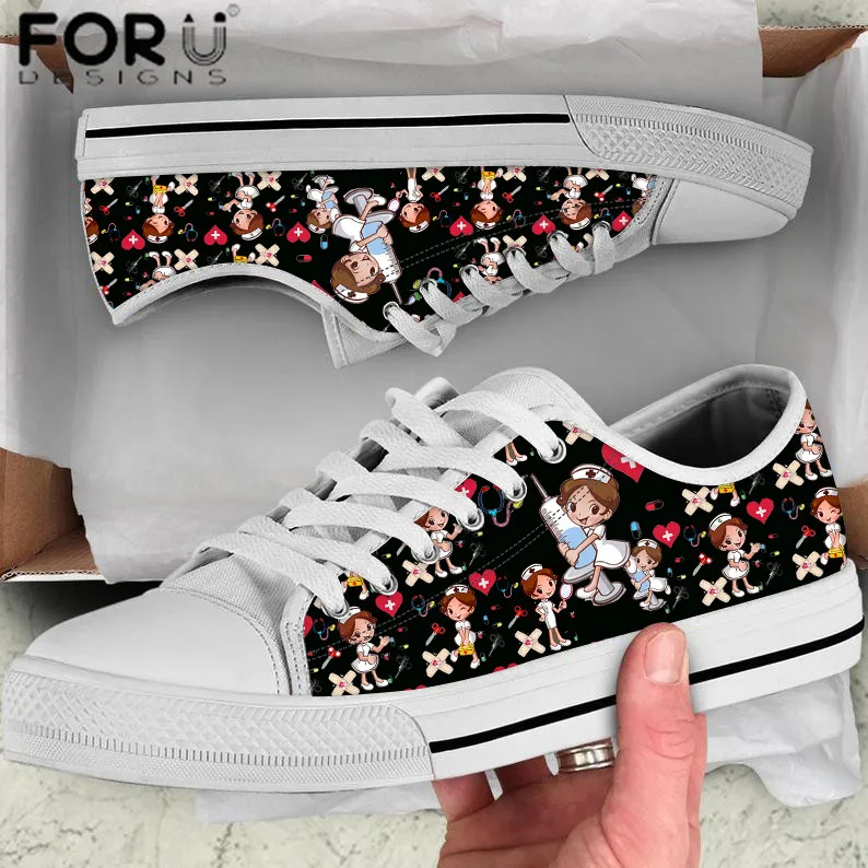 FORUDESIGNS 2020 новые черные белые кроссовки для медсестер с принтом Вулканизированная обувь нескользящие резиновые кроссовки Kpop модная холщовая обувь на плоской подошве
