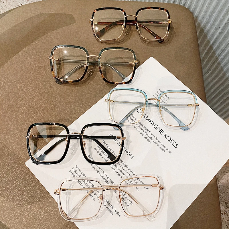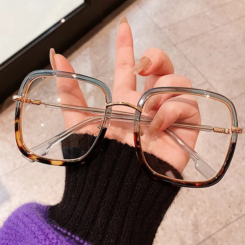 Уникальная модель с двумя Цвет рамка с леопардовым принтом из прозрачного квадратного, очки с оправой для женщин Новая мода негабаритные с защитой от УФ-светильник компьютер оттенков