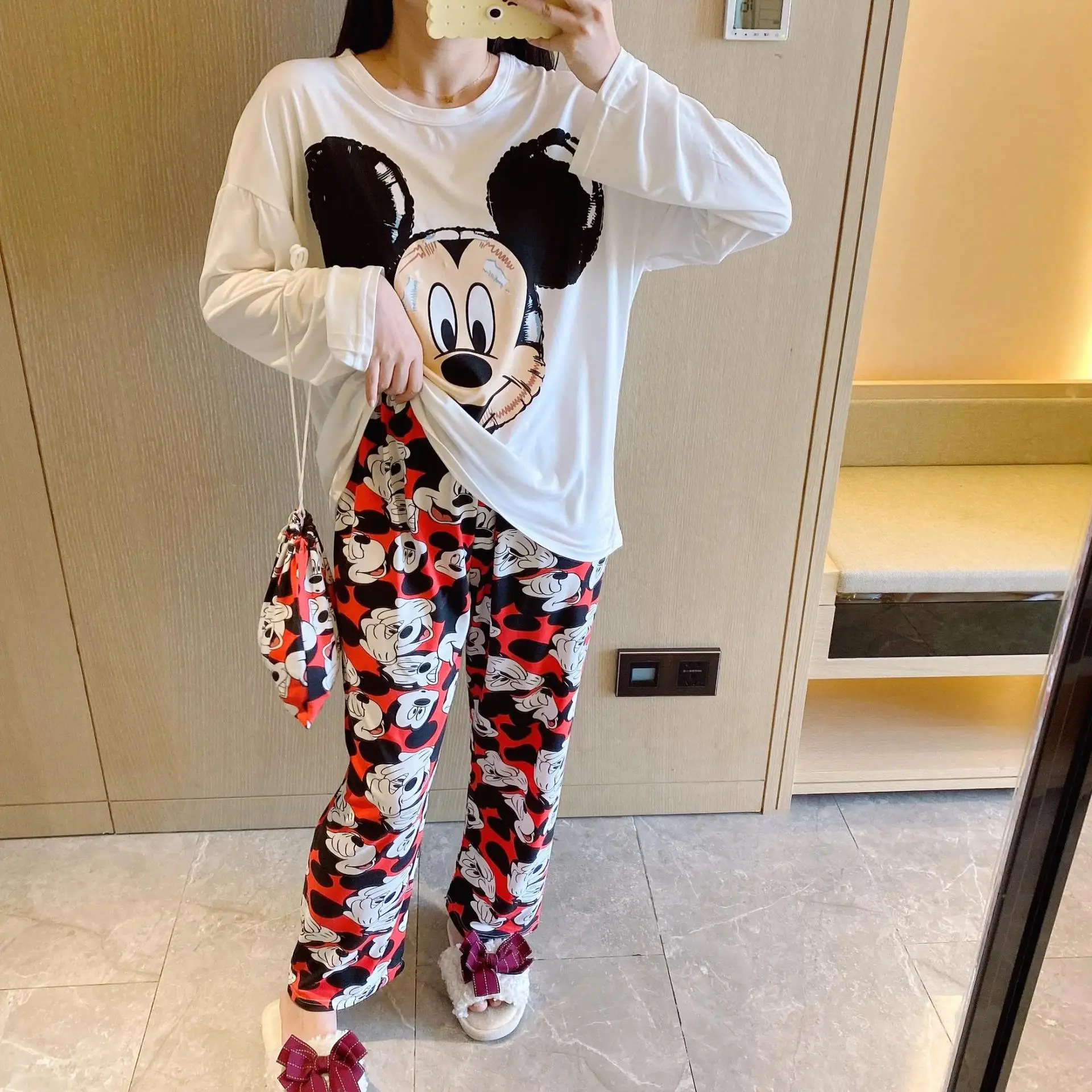 Весенняя Осенняя пижама с принтом для девочек Disney, милая Женская домашняя одежда, комплект из двух предметов для отдыха, домашняя одежда с Микки, домашний костюм, одежда для сна