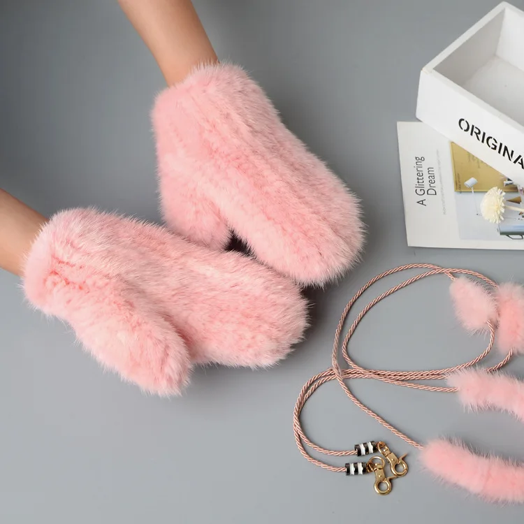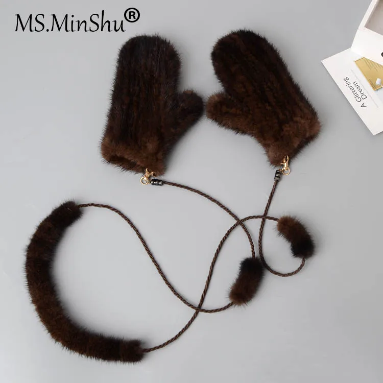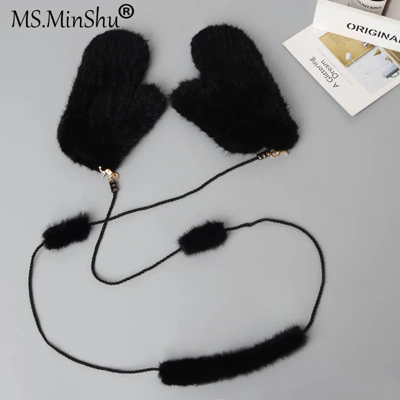 Женские зимние перчатки из меха норки Ms.MinShu, модные варежки из натурального меха норки, ручная вязка, Прямая поставка