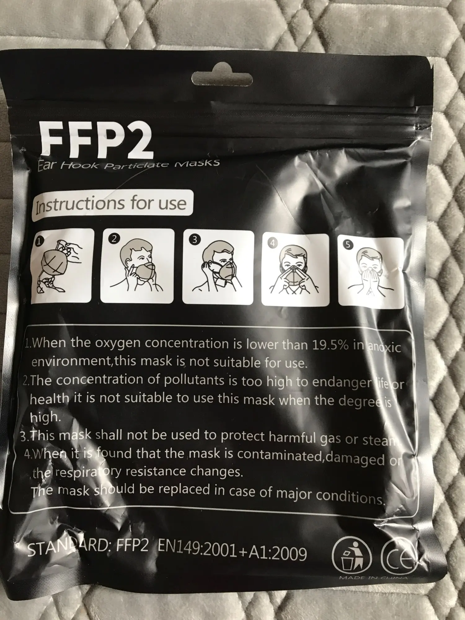 Точное описание. Это FFP2, а не KN95, который снимет их в Испании. Они одобрены и сделали то, что они сказали 20 дней. Они хорошо защищены и упакованы, вы не можете видеть, что внутри. Я рекомендую продавцу.