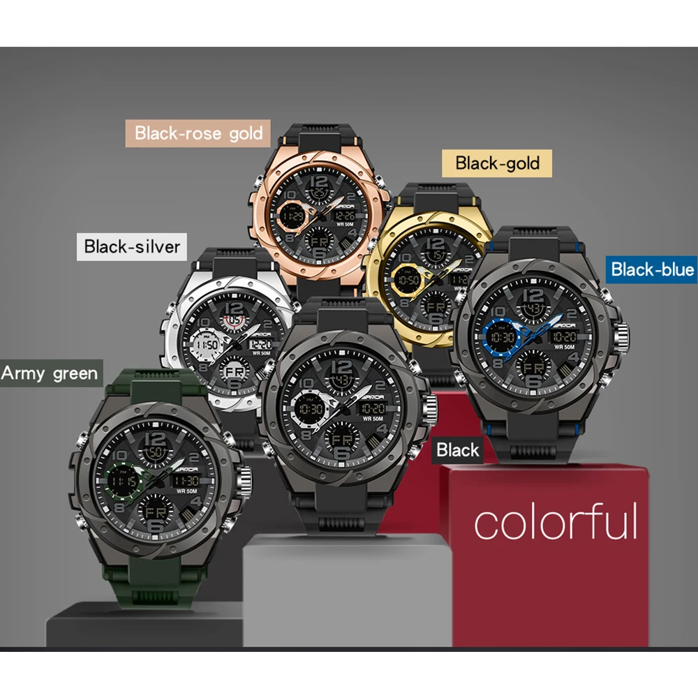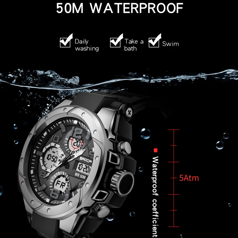 Часы наручные SANDA мужские с цифровым указателем, спортивные ударо...