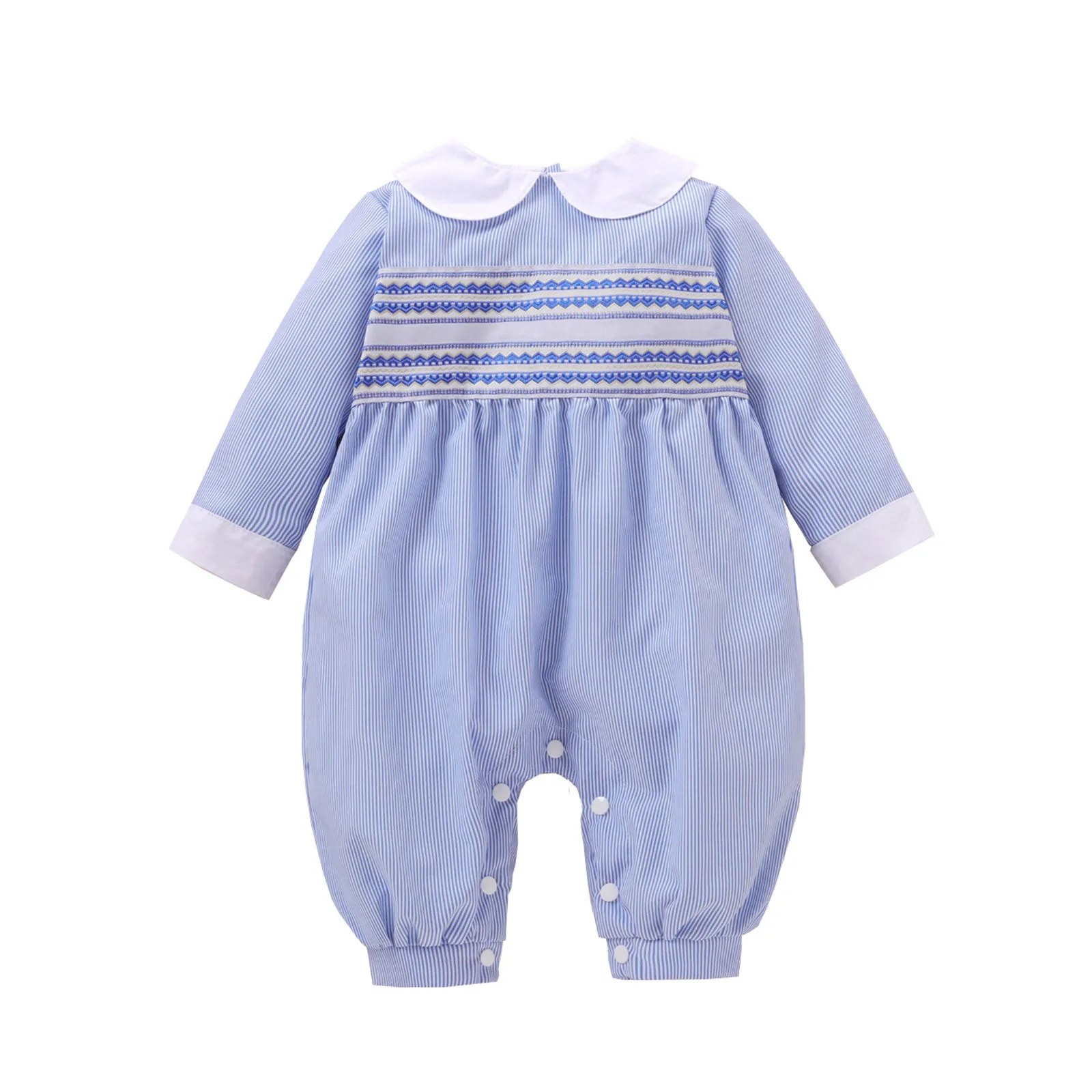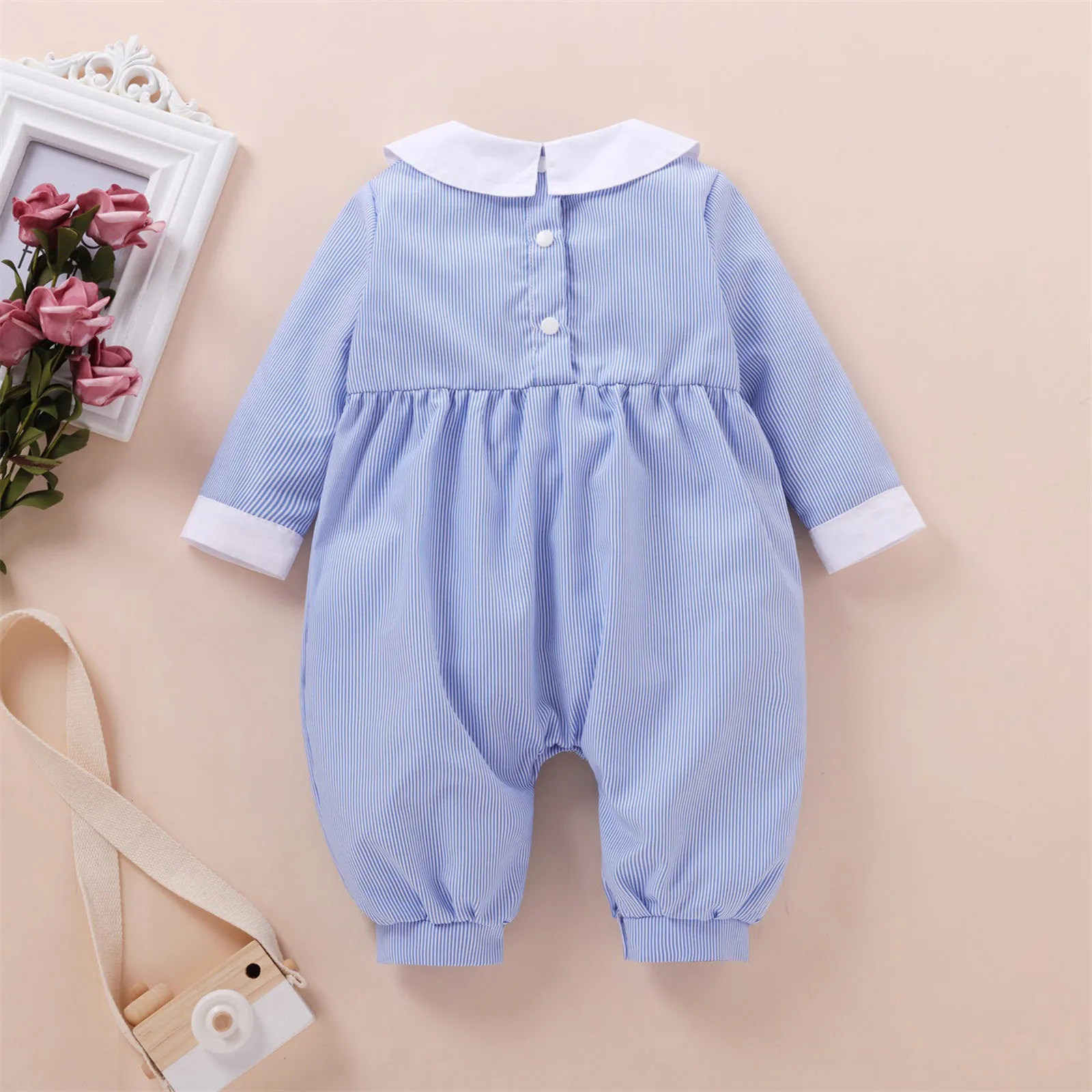 Модный осенний костюм для новорожденных девочек, зимний костюм в полоску с воротником Питер Пэн и длинным рукавом, комбинезон, комбинезон, одежда # p4
