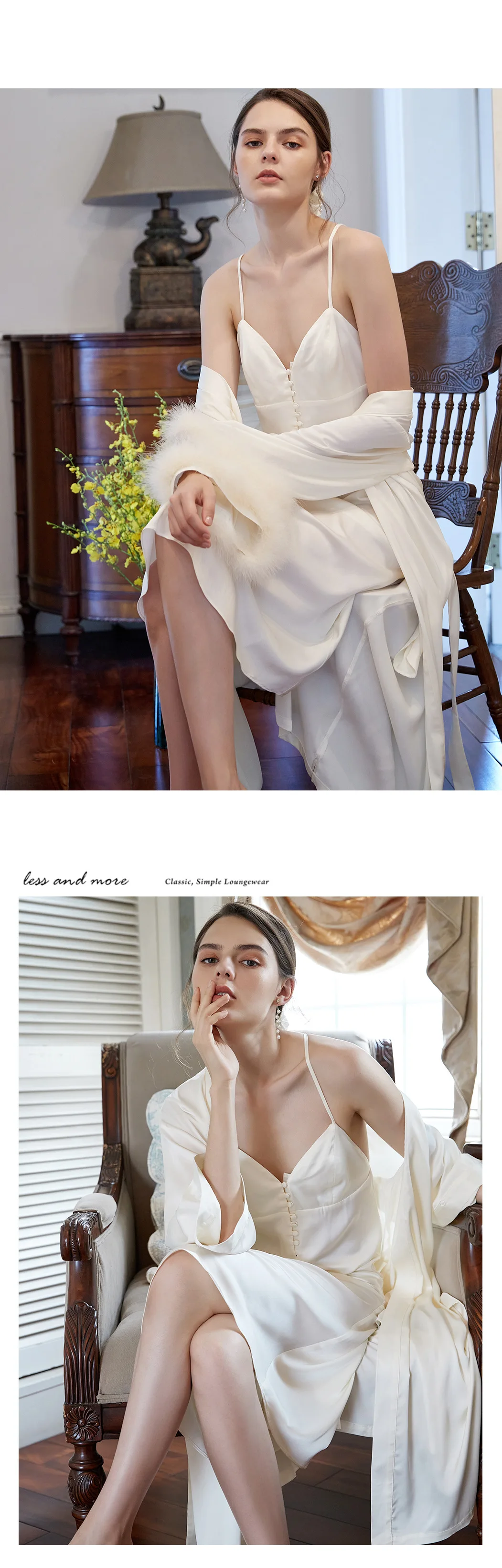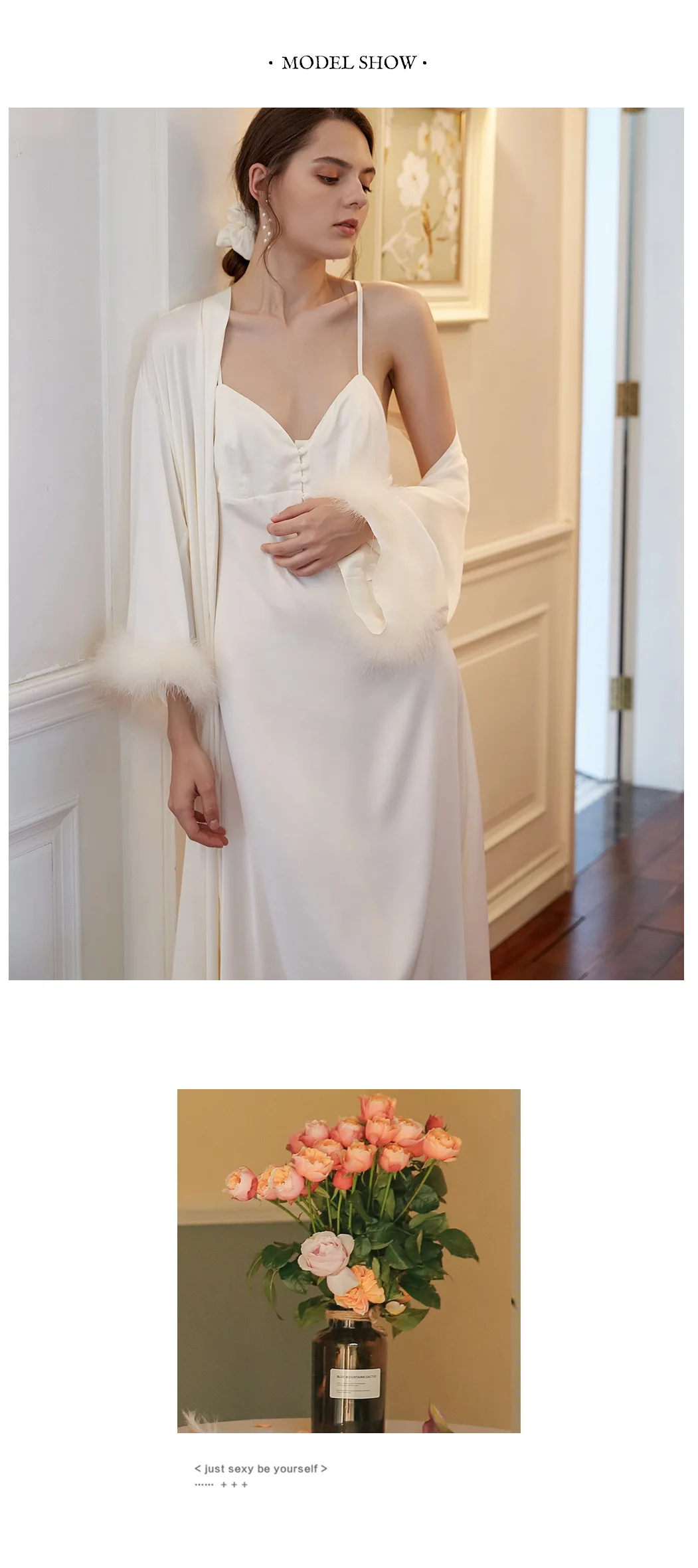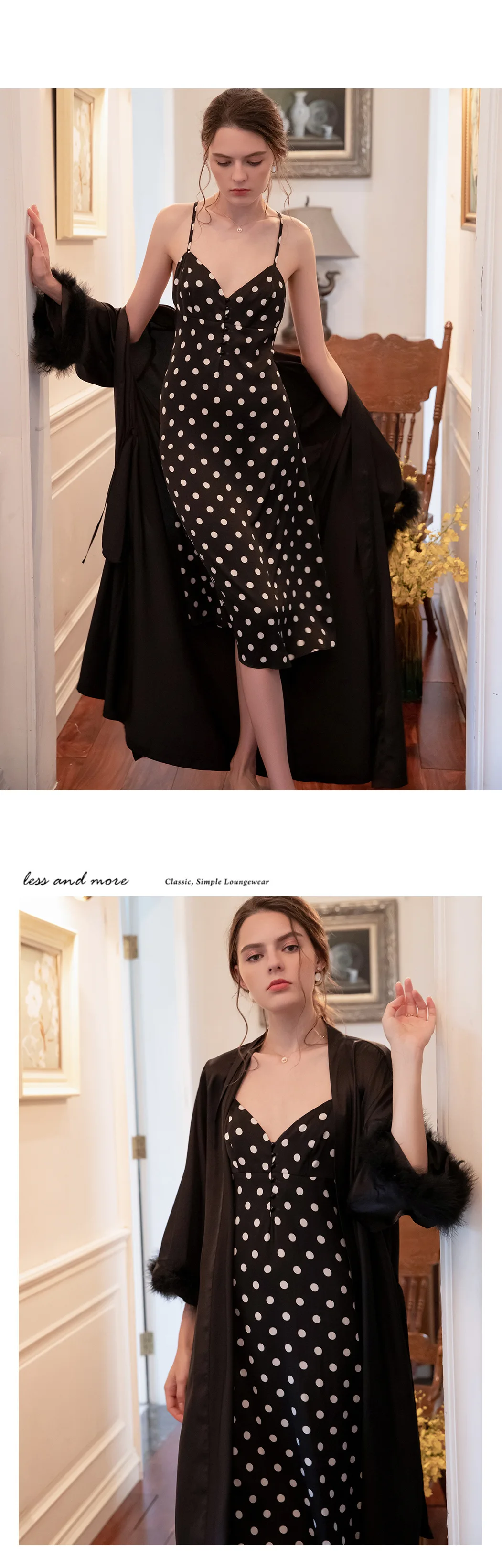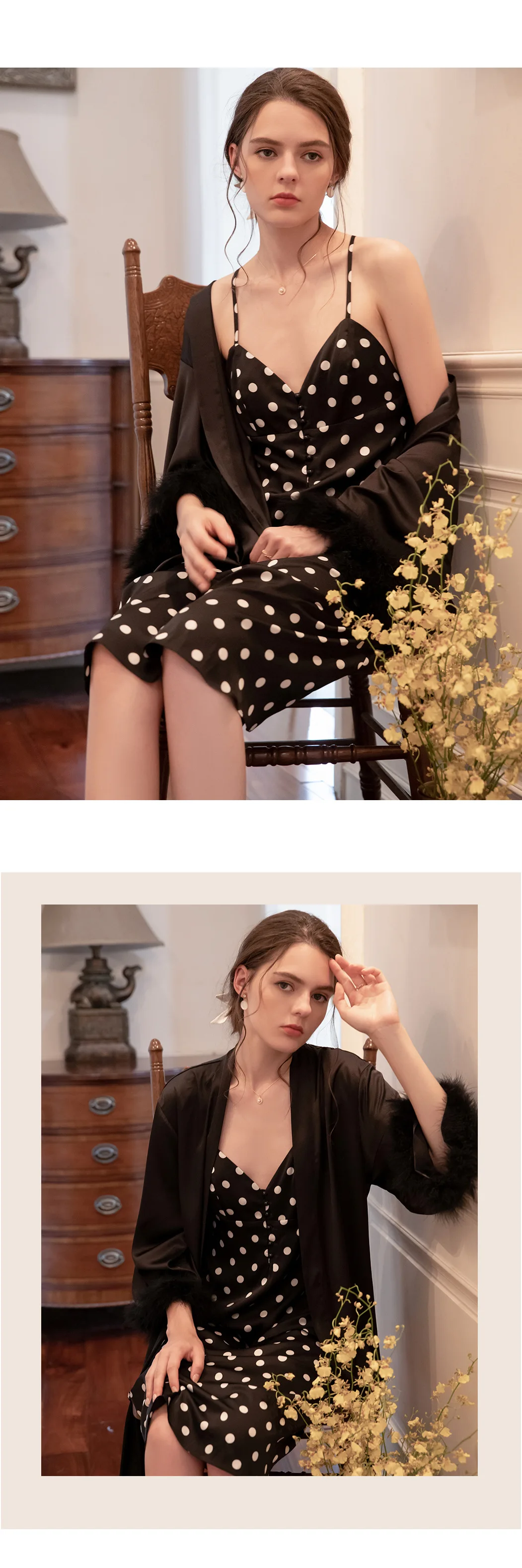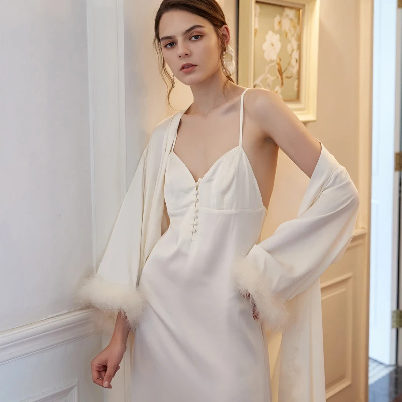 Женская ночная сорочка, пикантная Осенняя Пижама, Женский комплект с сорочкой и платьем, модная романтичная Женская одежда для сна