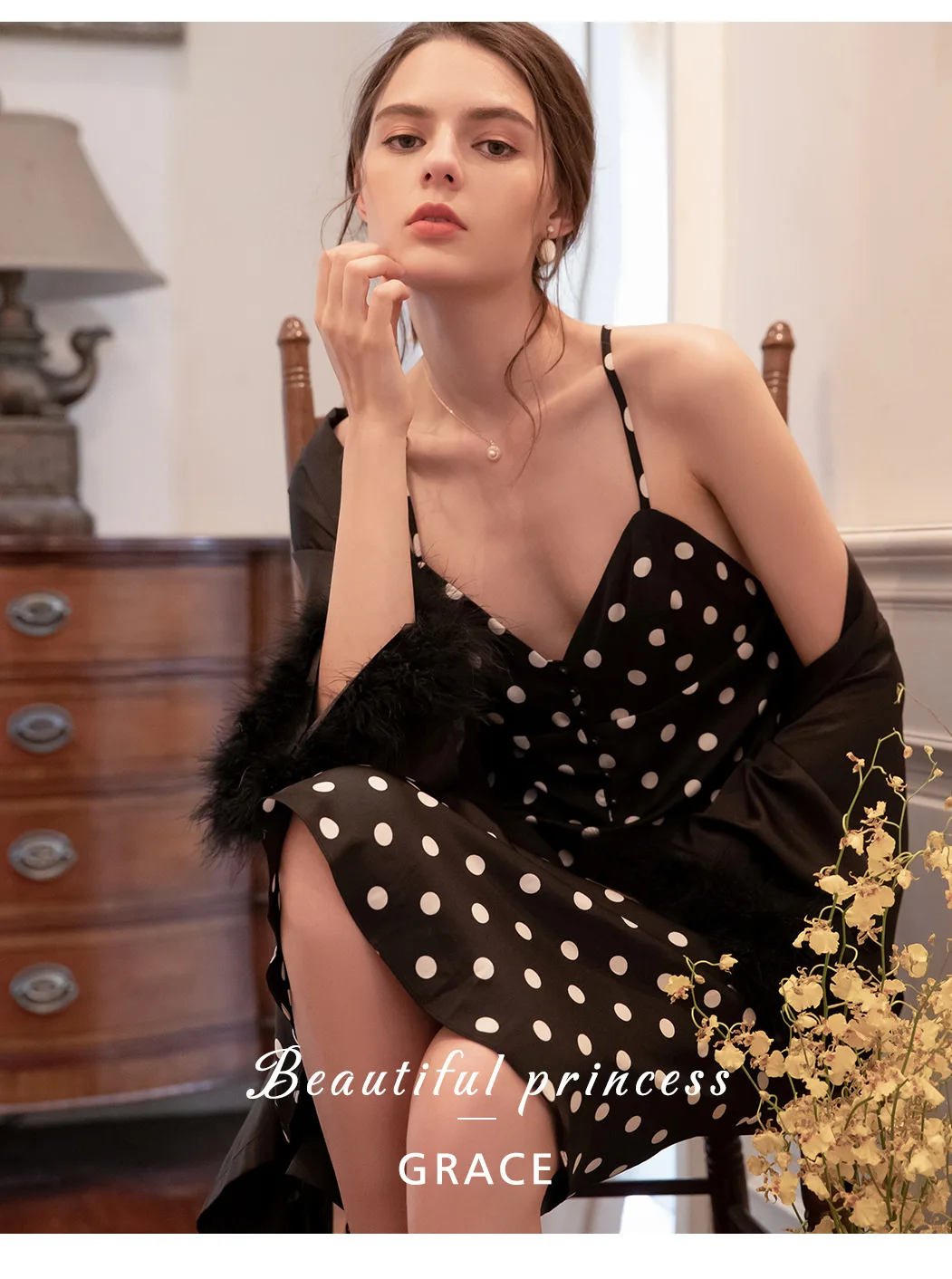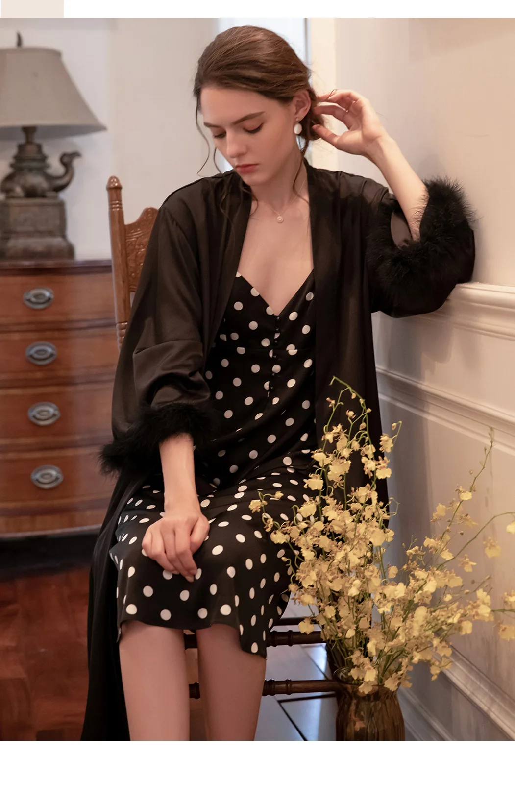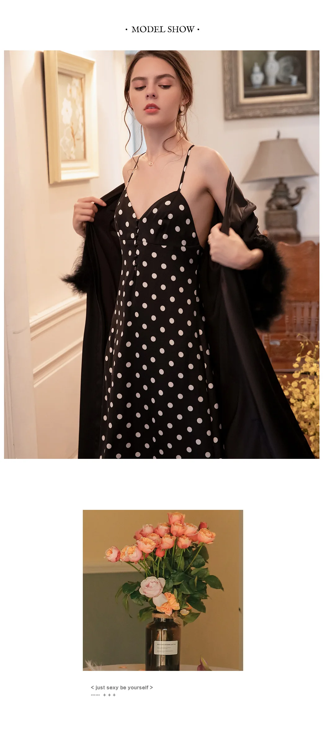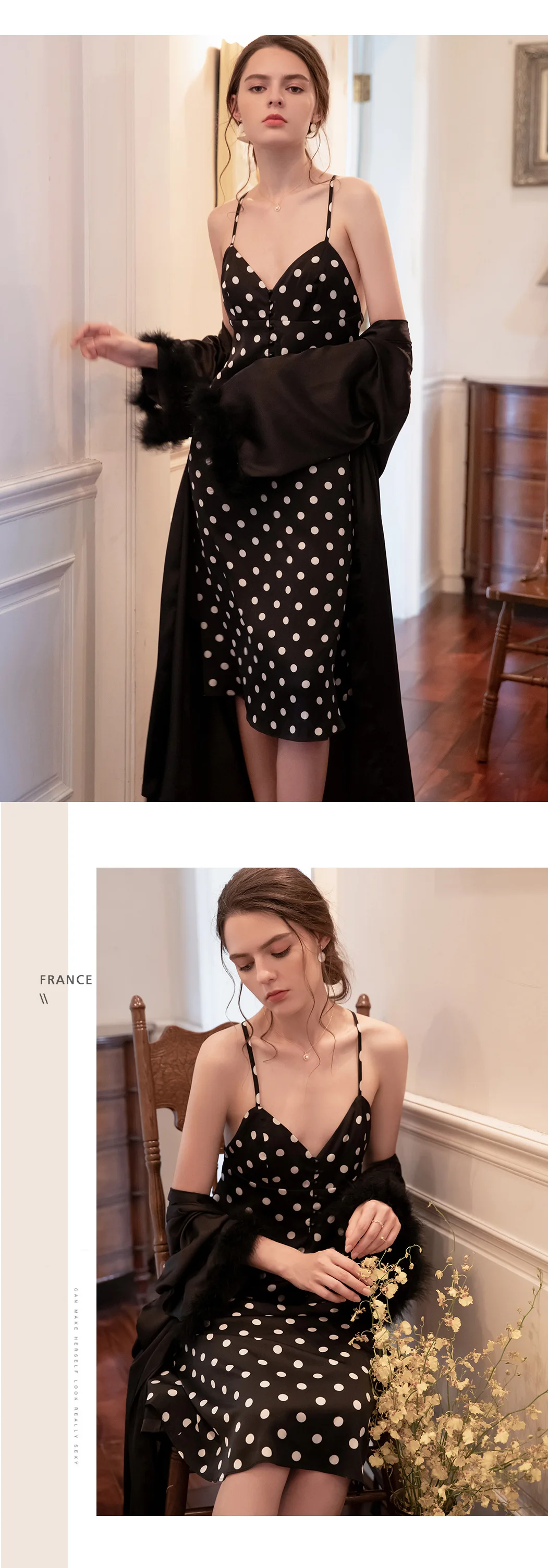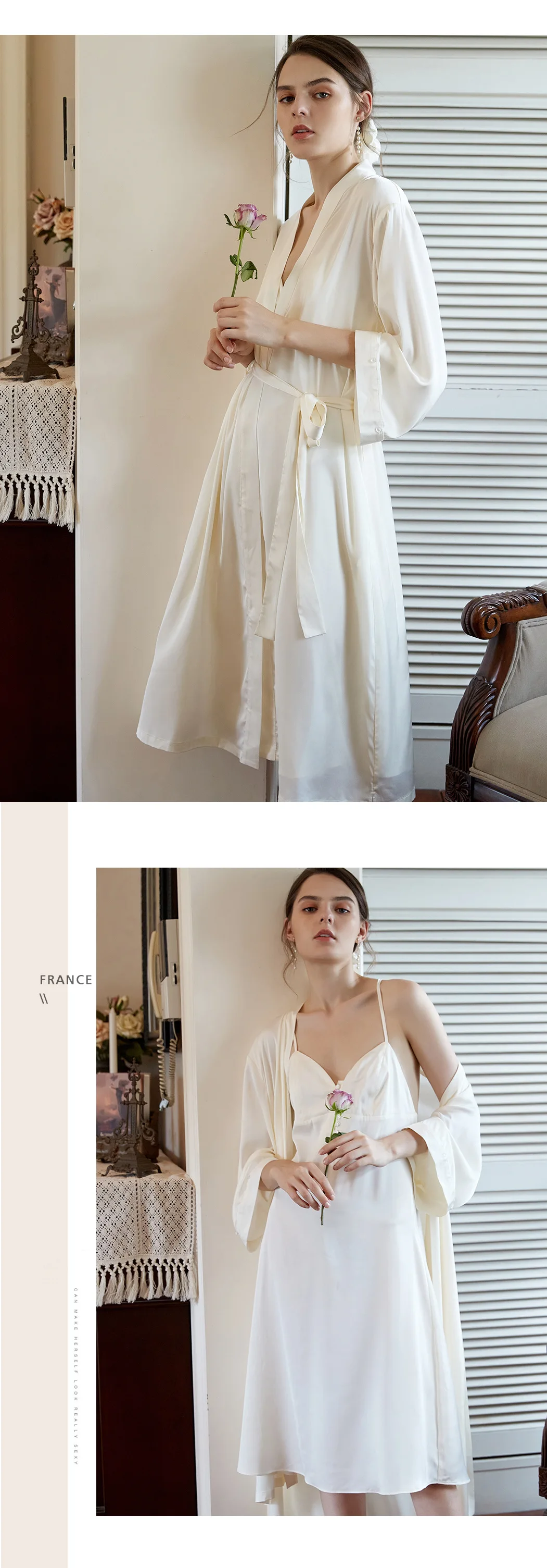 Женская ночная сорочка, пикантная Осенняя Пижама, Женский комплект с сорочкой и платьем, модная романтичная Женская одежда для сна
