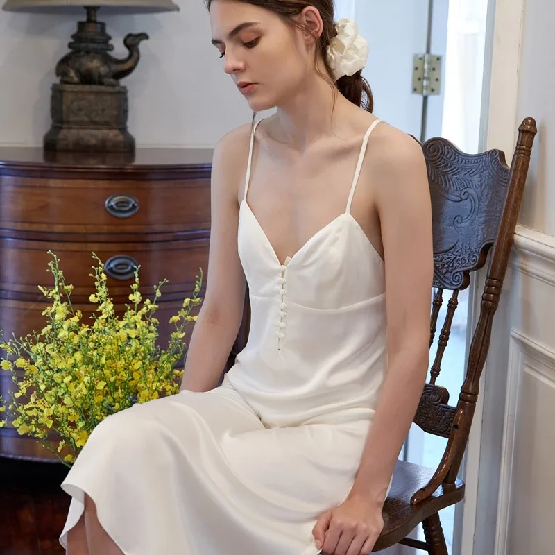 Шелковая атласная ночная рубашка на осень и зиму, новый стиль, плат...