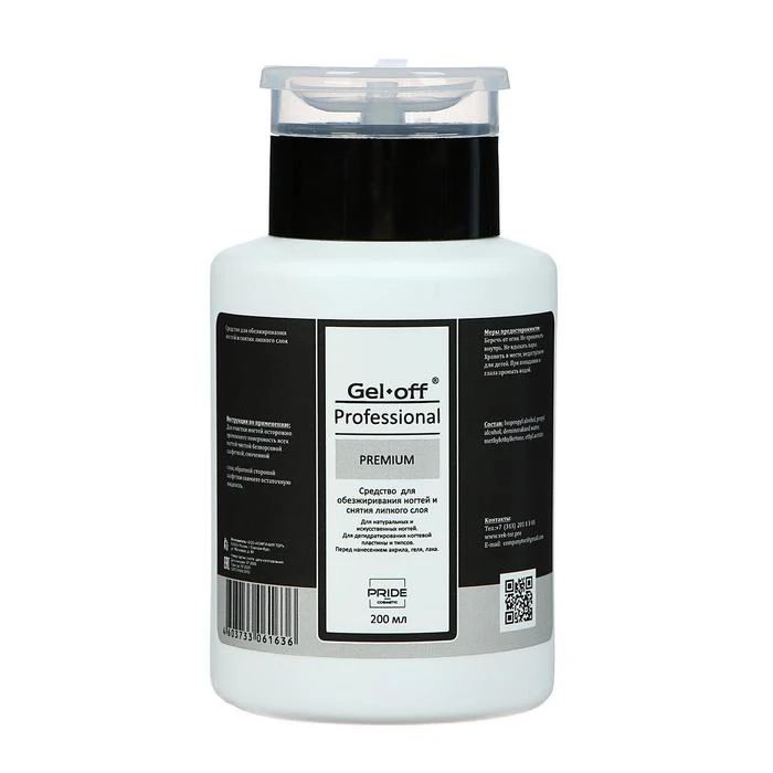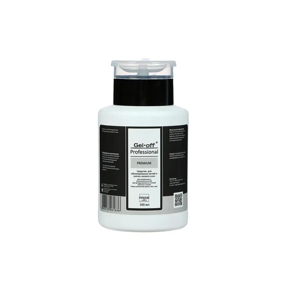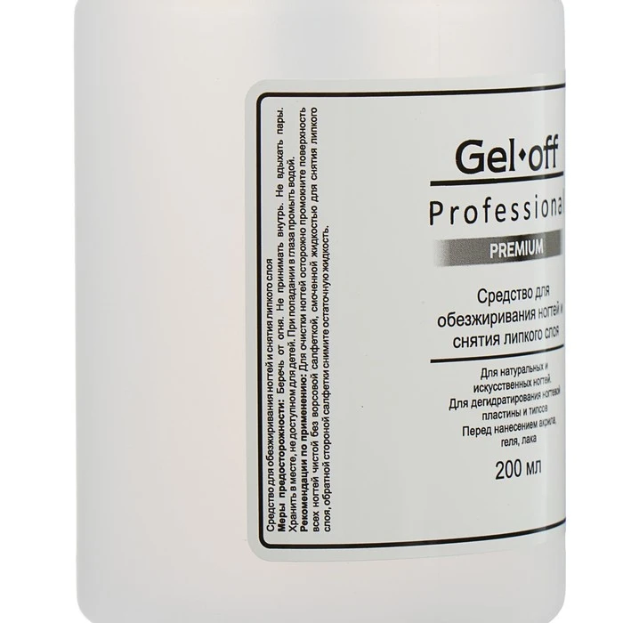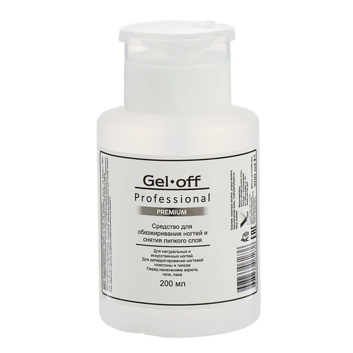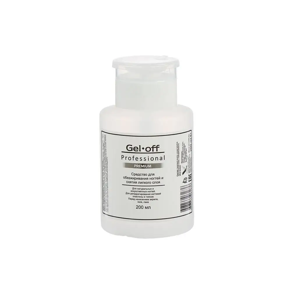 Средство для обезжиривания ногтей и снятия липкого слоя Gel*off Premium Professional, помпа, 200 мл
