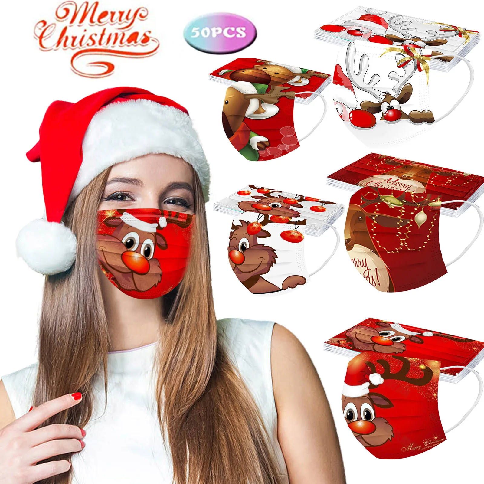 50 шт. Рождество уход за кожей лица Маска одноразовая Санта 3ply Earloops взрослых уход за кожей лица mascarillas с утолщённой меховой опушкой, tapabocas Mascherine Маска Тканевая
