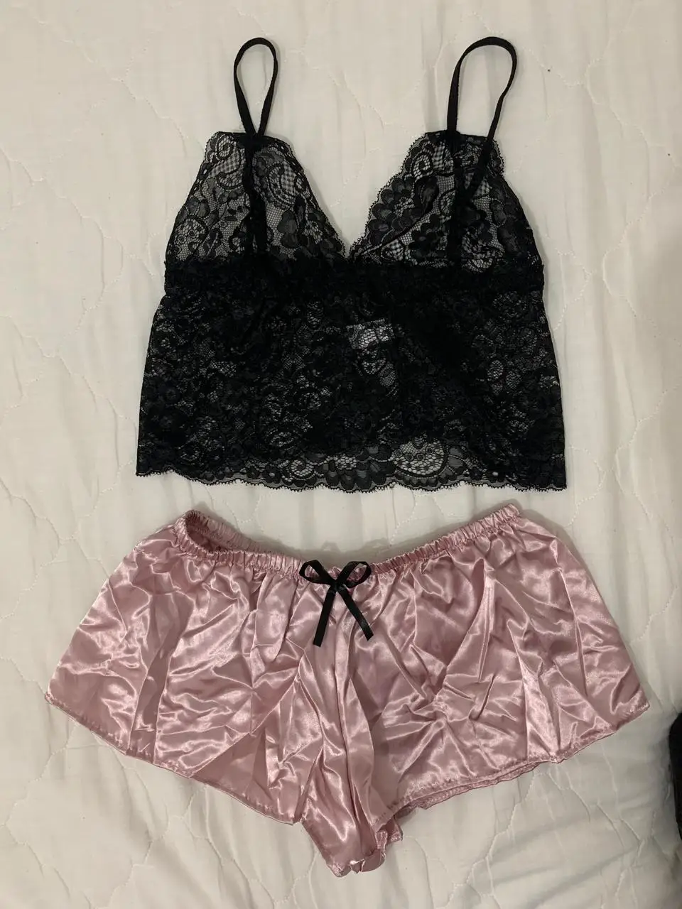 Женское атласное нижнее белье на бретельках с V-образным вырезом, кружевное нижнее белье и шорты, пижамный комплект