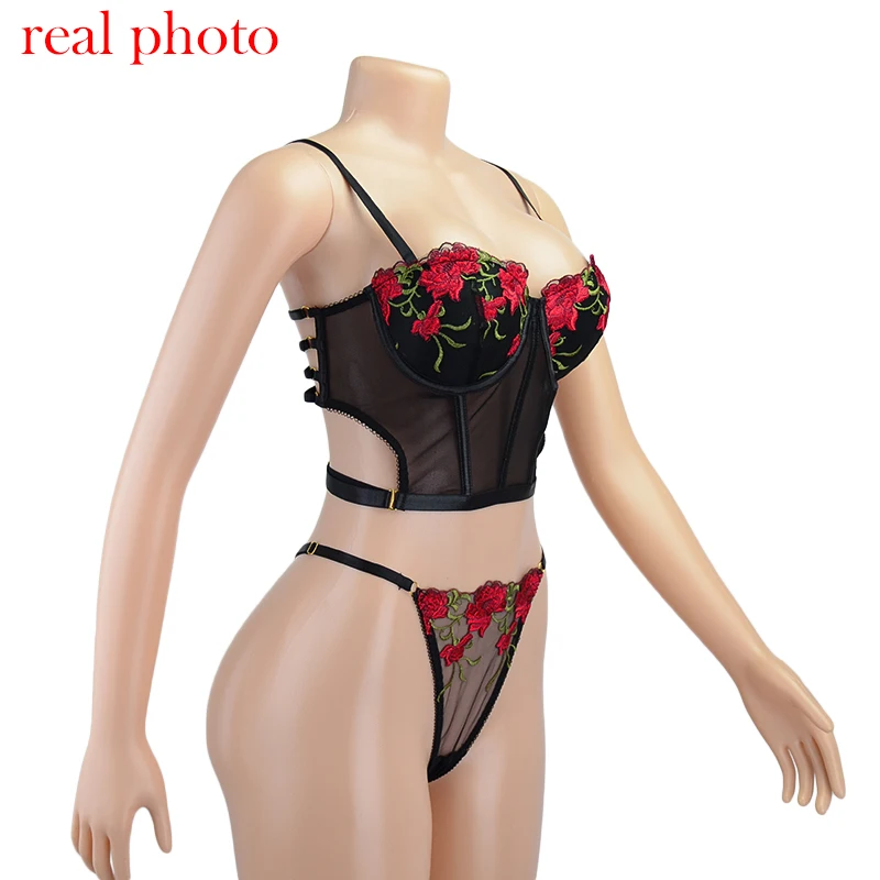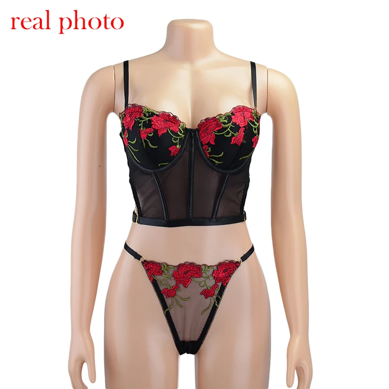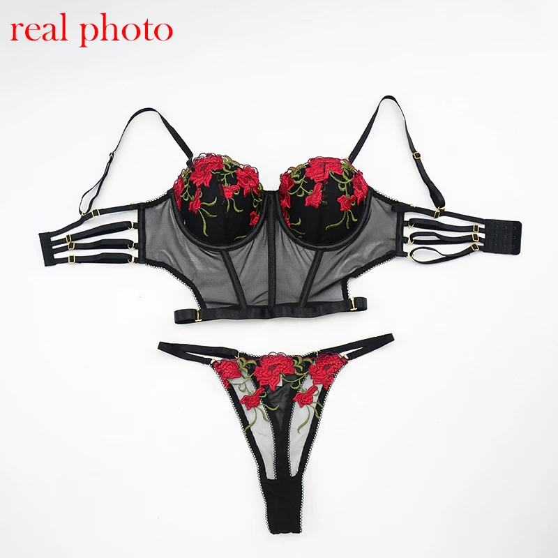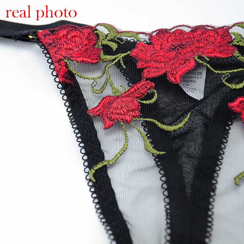 Комплект нижнего белья с бюстгальтером, сексуальный комплект нижнего белья, Женский комплект нижнего белья с цветочной вышивкой, пуш-ап, бюстгальтер, стринги, Lenceria, комплект нижнего белья, женская одежда для сна