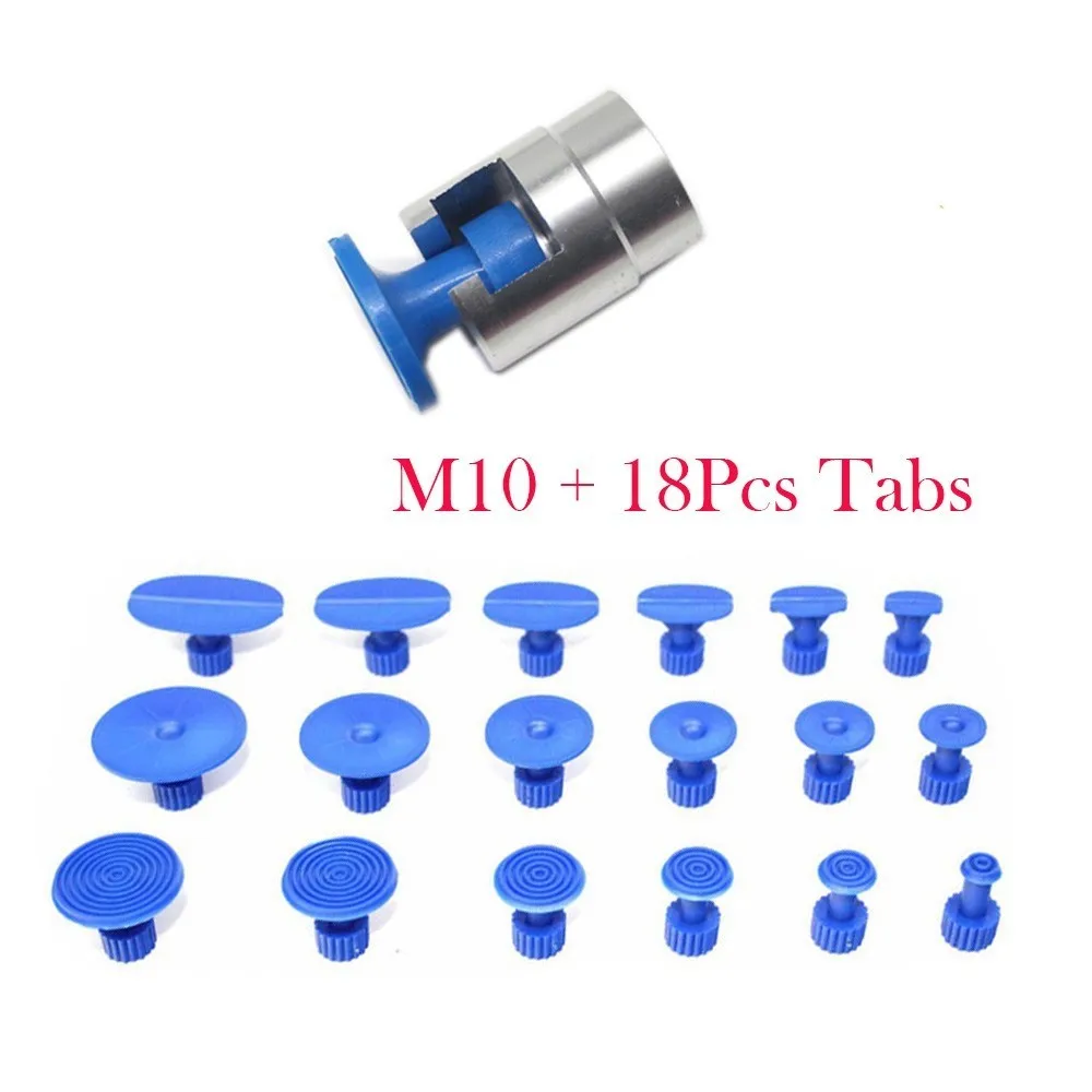 Съемник для ремонта вмятин из алюминиевого сплава автомобиля, адаптер для головки, винтовые наконечники для скользящего молотка и вытягивающего язычка M10 и 18 шт. клеевых язычков