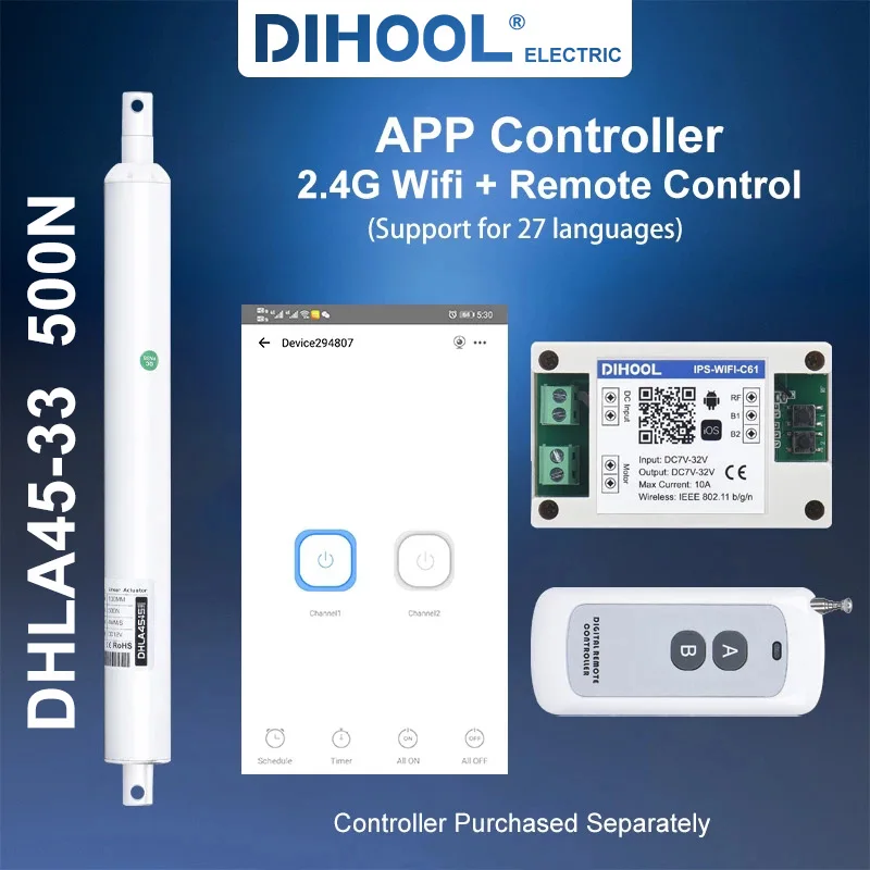 DHLA45 серии прямые стержни Электрические Линейные Приводы имеют четыре диаметра труб, таких как 20 мм/30 мм/33 мм/45 мм, и степень водонепроницаемости может достигать IP65. Различные диаметры труб имеют различные грузоподъемность, которые используют различные двигатели. 20 мм Максимальная нагрузка диаметра трубы 150N, максимальная нагрузка 30 мм диаметр трубы 300N, максимальная нагрузка 33 мм диаметр трубы 500N, И максимальная нагрузка 45 мм диаметр трубы 3500N. Этот прямой стержень Электрический привод может поддерживать напряжение 12 В 24 В и может быть настроен в различных спецификациях и тактах.