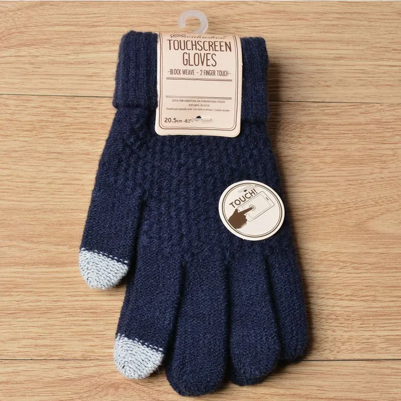 Женские и мужские зимние перчатки для сенсорного экрана, теплые вязаные варежки