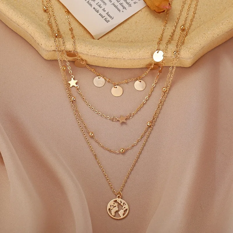 Женская цепочка с подвеской в виде земли, Многоуровневое Золотистое...
