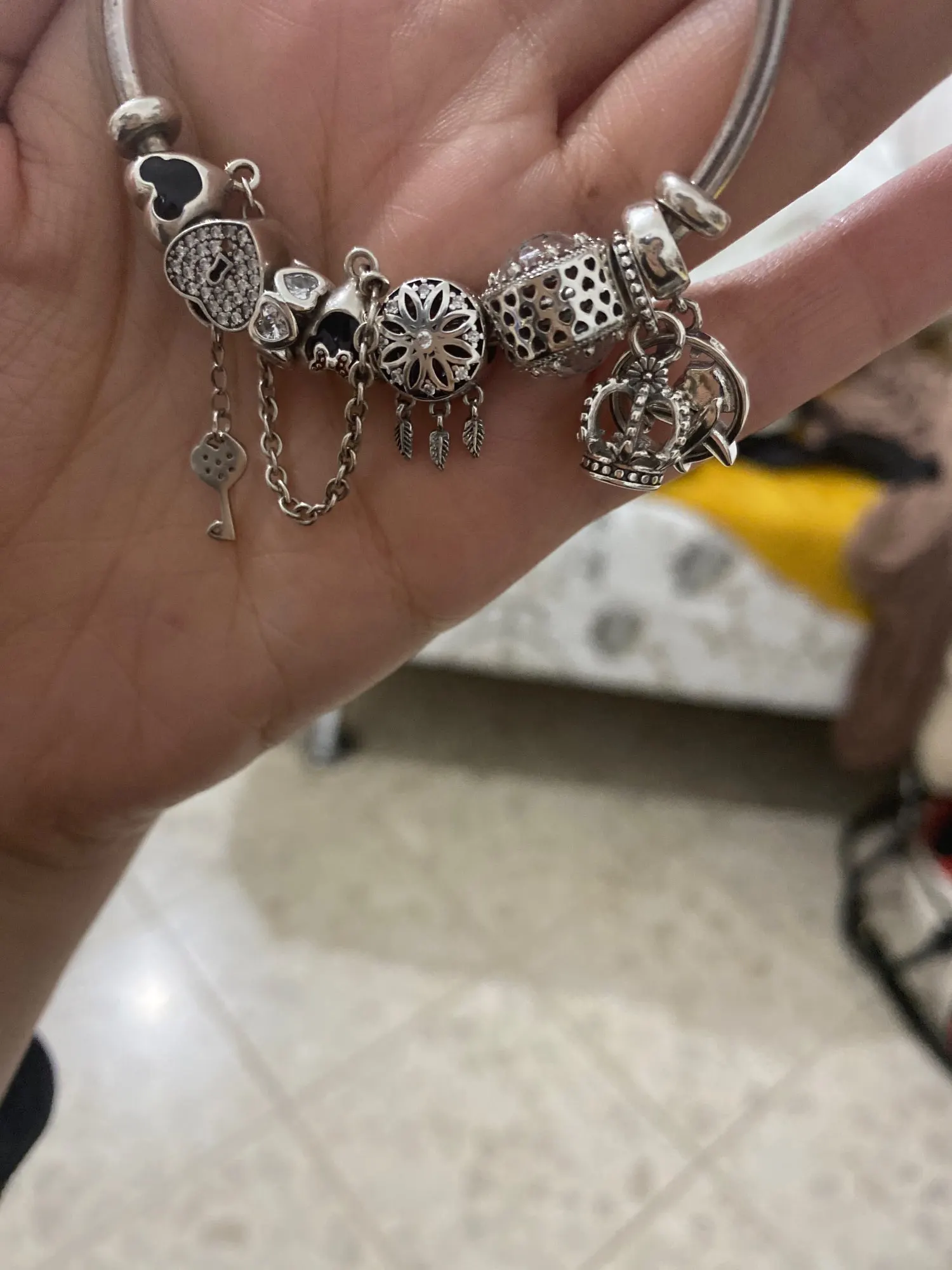 Выглядит идеально и очень хорошего качества, теперь нам нужно подождать, чтобы увидеть, станет ли он уродливым или нет. Его функция, которая является цепью безопасности, не соответствует, но она очень красива в моем браслете Пандоры