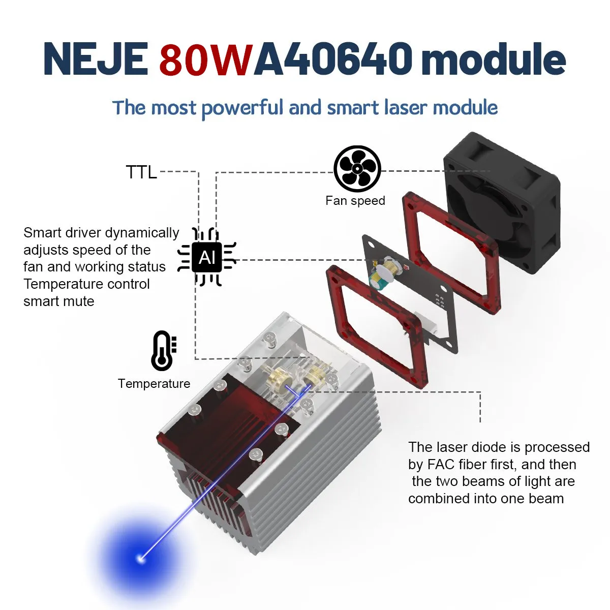 Лазерный модуль NEJE 450 нм 20 Вт30 Вт40 Вт50 Вт80 Вт, лазерная головка, используется для лазерной гравировки и лазерной режущей машины, Деревообрабатывающие инструменты