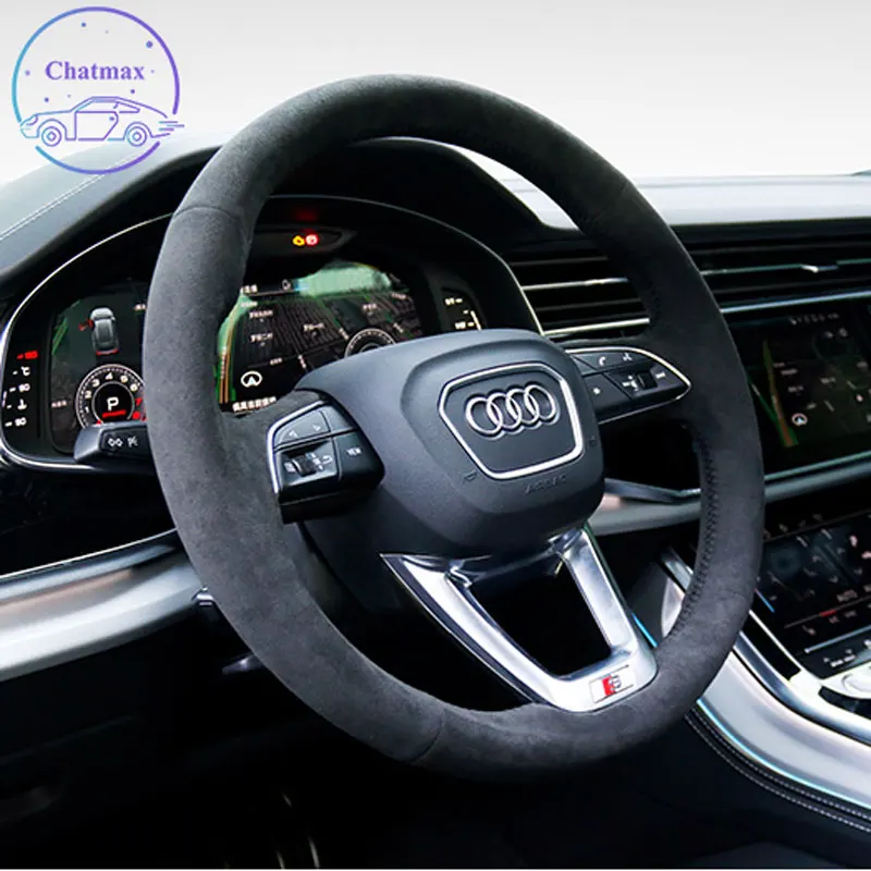 Вышивка из алькантары чехол рулевого колеса автомобиля для Audi A4 Q5 Q5L Q7 Q8 2012-2015 2016 2017 2018 2019 2020 Ручное шитье под заказ