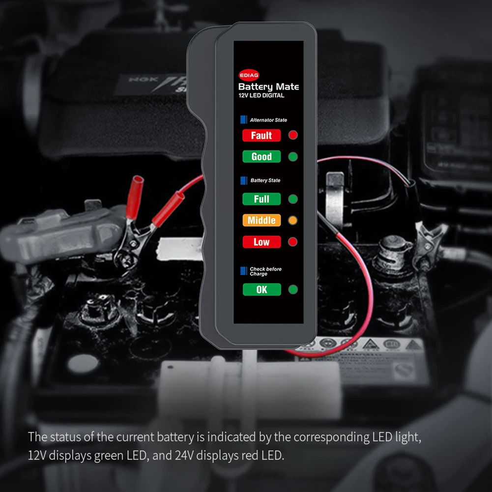 Этот тестер батареи, безопасный и простой в эксплуатации, имеет несколько функций, проверку состояния генератора, проверку состояния батареи, проверку перед грузом и перегрузкой. Дисплей, сообщите нам состояние генератора и батареи, тем самым улучшая нашу безопасность вождения.